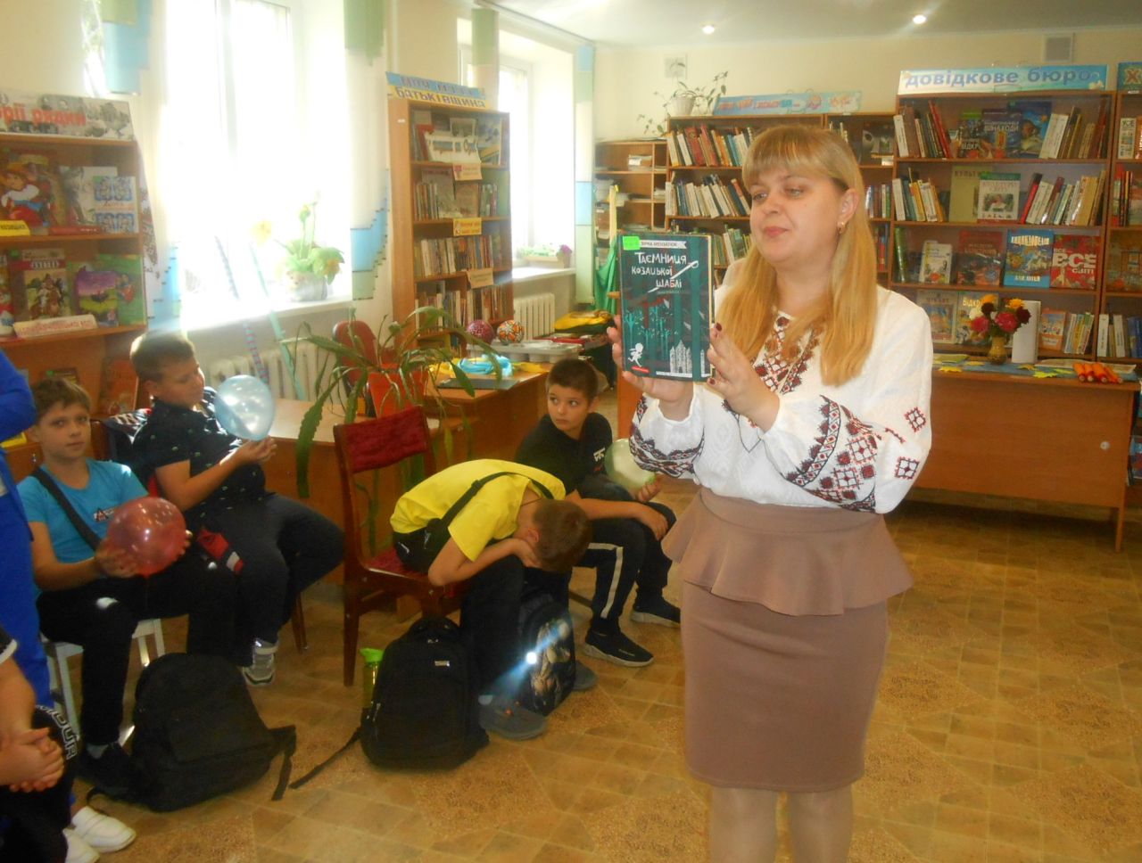 З цікавістю діти слухали бібліографічний огляд книг сучасних авторів, що містять карколомні сюжети, захоплюючі пригоди, військові подорожі та звитяги лицарів козацької доби.