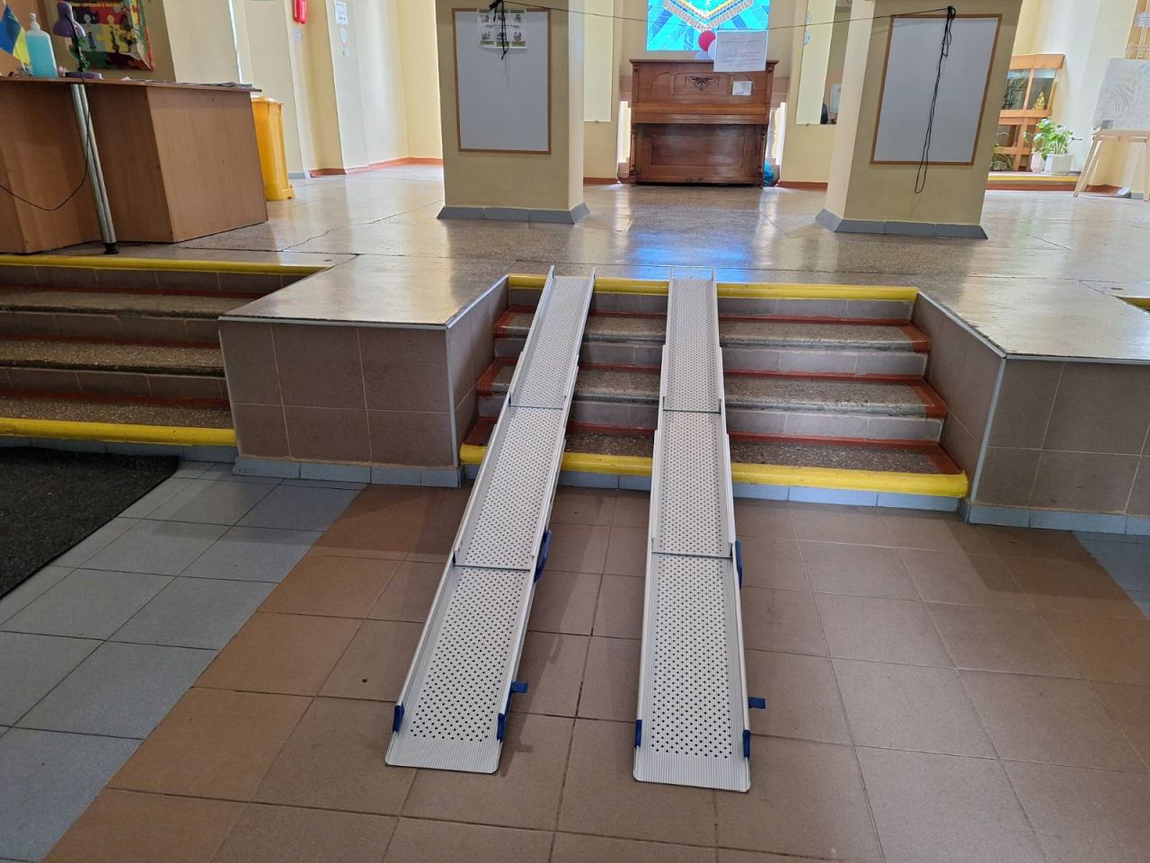 Також у рамках проєкту були створені умови для безбар’єрного доступу до закладу освіти для осіб з інвалідністю шляхом встановлення двох стаціонарних та одного переносного телескопічного пандусу, що забезпечить надання ще якісніших освітніх послуг у цьому навчальному закладі.