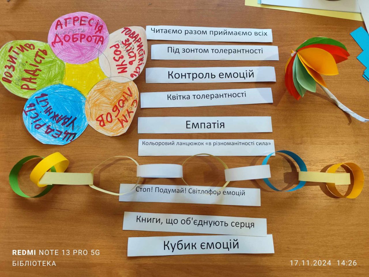 Діти знайомилися з книгами, були учасниками ігор і тренінгових вправ: «Стань на місце іншого», «Квітка толерантності, «Пазли єдності», «Кольоровий ланцюжок», «Кубик емоцій», «Світлофор емоцій», під час яких вчилися розпізнавати емоції співрозмовника та знаходити слова підтримки. Інтерактивна вправа допомогла учасникам зрозуміти, наскільки важливо бути уважними до емоцій оточуючих.