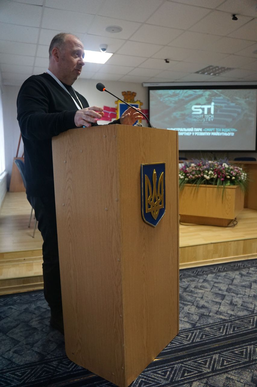 Зустріч була продуктивною та змістовною. Директор ТОВ «СМАРТ ТЕХ ІНДАСТРІ» Олександр Руденко представив візуалізацію індустріального парку та відповів на питання присутніх.