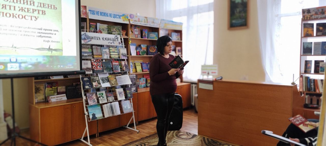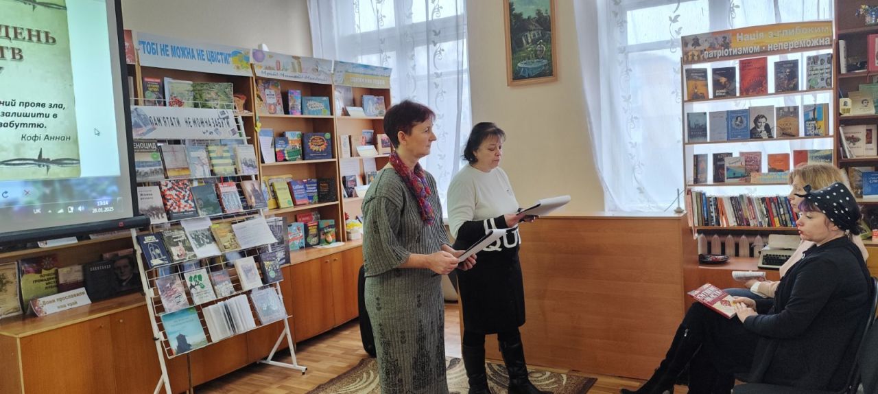 З цієї нагоди працівники Лубенської публічної бібліотеки імені Володимира Малика провели годину пам’яті про незабутні уроки історії. Ведучі заходу Лариса Гончарук та Сніжана Кириченко ознайомили учнів 9 класу Української класичної гімназії та ліцеїстів 10-Г Академічного ліцею «Європейський» з трагічними подіями нашого минулого. Уривок зі щоденника єврейської дівчинки Анни Франк зачитала Інна Сизоненко. Також демонструвався буктрейлер до роману «Крадійка книжок» письменника Маркуса Зузака. А гість заходу - науковий співробітник Лубенського краєзнавчого музею імені Гната Стеллецького Тетяна Сафронова, поінформувала про долі лубенців, які вижили в жахливому яру та про людей, які їм допомагали. Письменниця Ганна Кревська, базуючись на архівних матеріалах знищення лубенських євреїв у Засульському яру, зачитала уривок зі своєї повісті «Коржики».