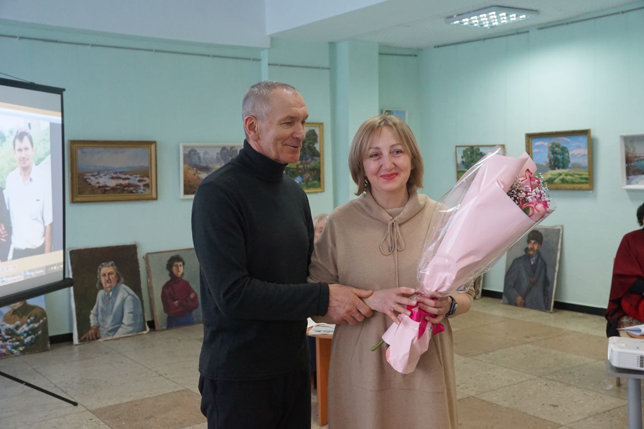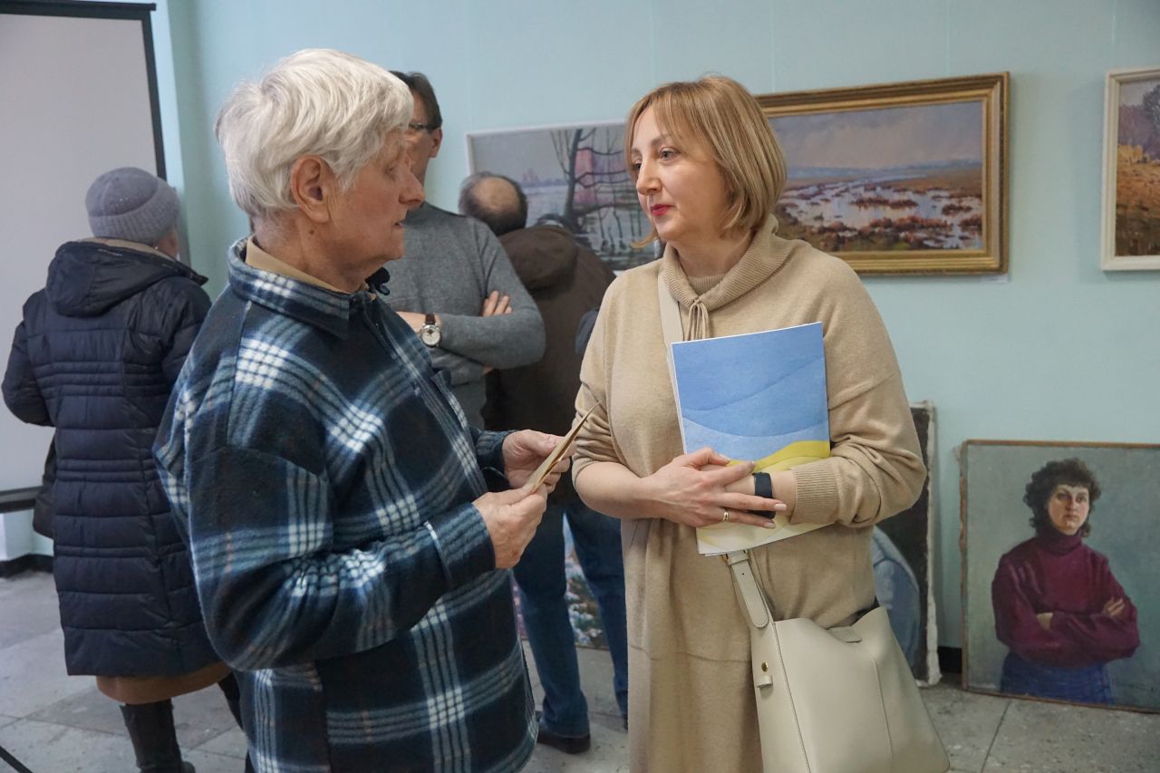 До присутніх, родини митця, шанувальників його творчості звернувся Лубенський міський голова Олександр Грицаєнко. Він наголосив, що життя Василя Семенюти – це вірність і відданість обраній справі, бажання працювати на користь рідного міста. На згадку про ювілейну виставку він подарував доньці Василя Івановича - Наталії Вертій, альманах «Лубенська художня весна - 2024».