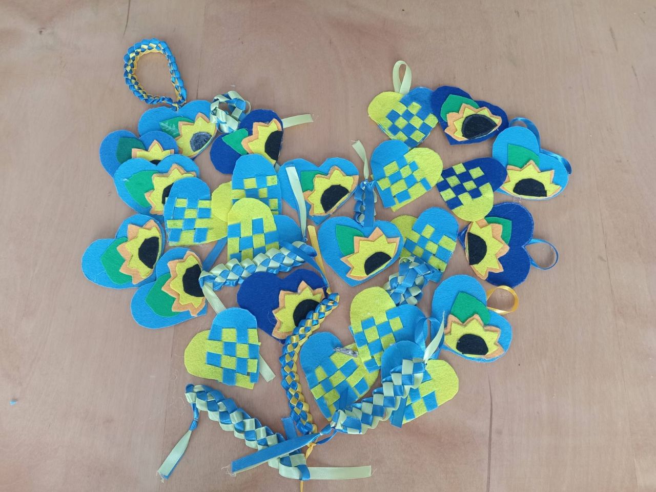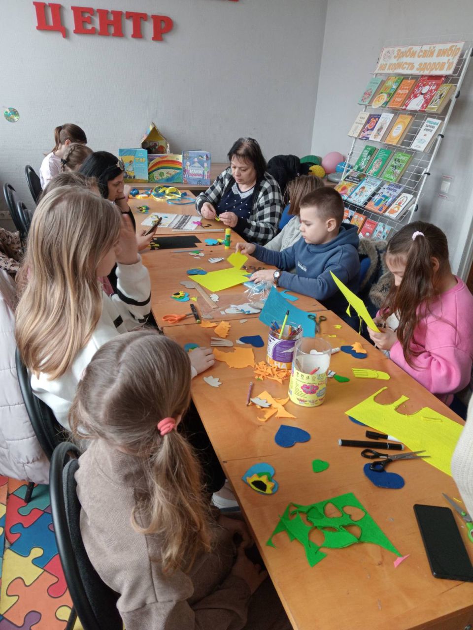 Учасниками майстерні добрих справ стали члени дитячого клубу «Книжкові розумаки», що діє в бібліотеці, та діти наших військових разом з Оленою Виповською, представником Полтавського обласного осередку «МРІЯ» - Українська фундація в місті Лубни, що підтримує родини загиблих, зниклих безвісти та полонених українських військовослужбовців. Дівчатка й хлопчики з любов’ю виготовляли патріотичні жовто-блакитні сердечка і браслети та навіть їх підписали. У кожен свій виріб діти вкладали максимум позитиву, тепла та віри у Перемогу. Згодом ці обереги будуть передані мужнім воїнам, що боронять наш спокій від ворога.
