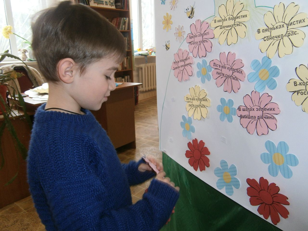 Щире, невимушене спілкування дало змогу пізнати цікаві факти із творчих біографій митців слова. І серйозна поезія з глибоким філософським змістом, як то «Мій перший вірш...», «Страшні слова, коли вони мовчать» Ліни Костенко, так і чудові її дитячі твори «Бузиновий цар», «Дощ» схвилювали і зачарували присутніх. А крилатий вислів-заклик Максима Рильського «Як парость виноградної лози, плекайте мову.» із його вірша «Мова» діти успішно розшифрували в запропонованій бібліотекарем інтелектуальній шараді. Гуртом декламували улюблений дитячий вірш кількох поколінь «Білі мухи» і навіть створили картину на поезію Максима Тадейовича «Дівчина».