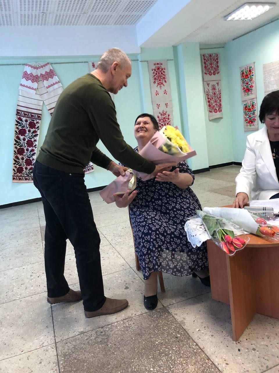 З вітальним словом, щирими побажаннями добра до вишивальниці звернулись керуючий справами виконавчого комітету Лубенської міської ради Юлія Білокінь, начальник Управління культури і мистецтв Юрій Литовченко, в.о директора Лубенського краєзнавчого музею імені Гната Стеллецького Тетяна Сафронова, голова Лубенської районної організації профспілки працівників освіти і науки України Людмила Грицаєнко, народна майстриня художньої вишивки, членкиня Національної спілки майстрів народного мистецтва України з міста Гребінки Олена Наталенко, талановита майстриня, журналіст газети «Вісник» Тамара Бірюкова, головний редактор газети «Вісник» Людмила Бірюкова.