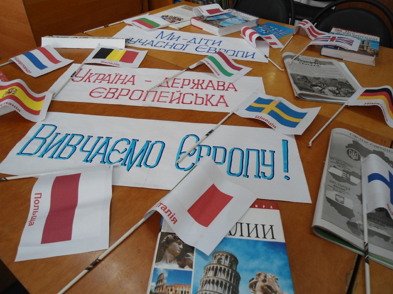 До Дня Європи у Лубенській бібліотеці для дітей ім. О.Донченка оформлено експрес-виставку «Відкрий для себе Європу», на якій представлені цікаві факти (культура, звичаї, традиції європейців, особливості національного одягу представників європейських країн тощо).