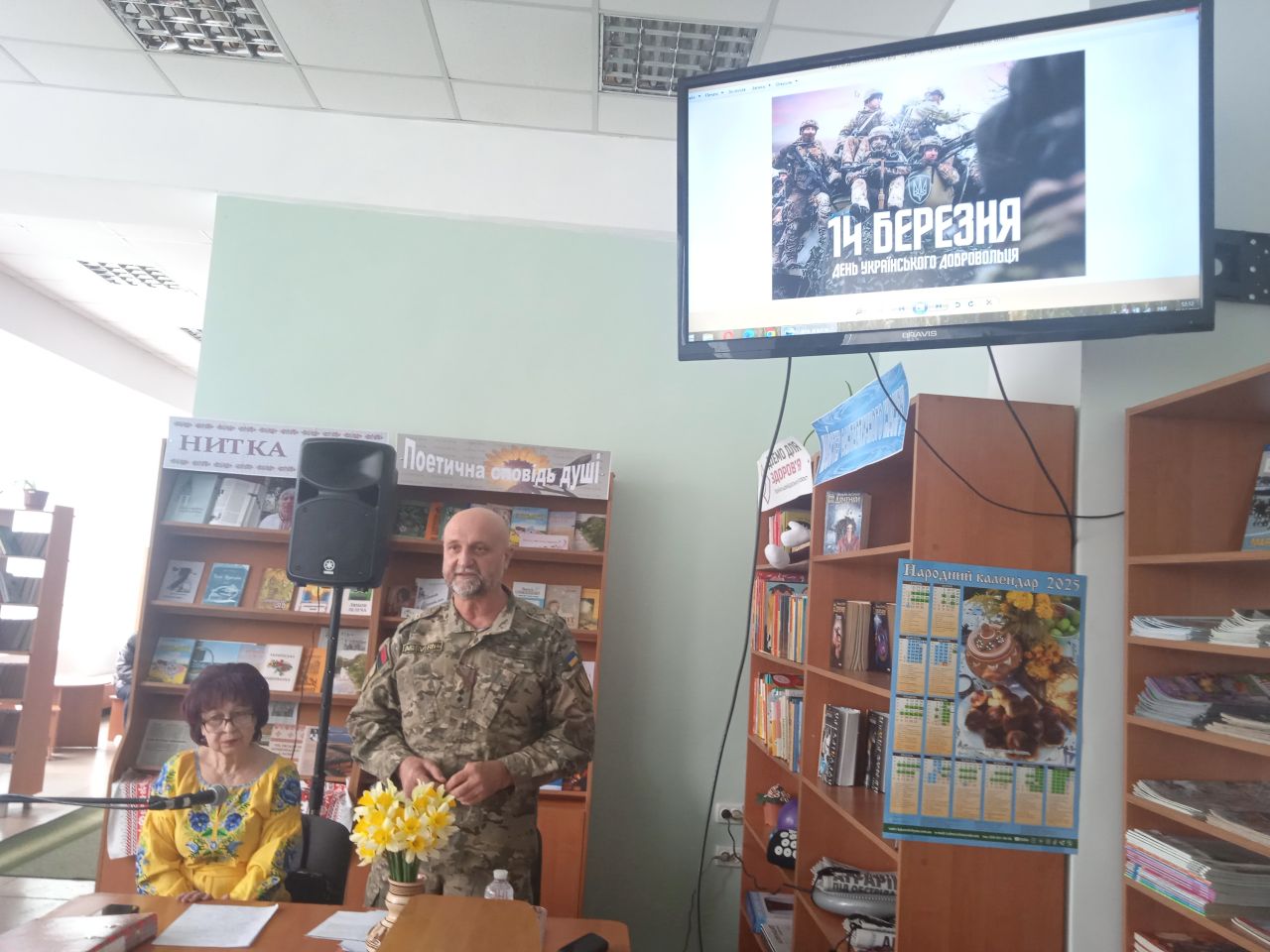 Оскільки презентація збірки була приурочена Дню українського добровольця (відзначається в Україні 14 березня), Петро Ворона розповів про цю дату та неоціненний вклад добровольців, починаючи з 2014 року, в захист української землі від загарбників. Вдалим доповненням до сказаного став аудіозапис пісні «Марш козацької кінноти» (слова Людмили Таран-Пономаренко, музика Володимира Карлаша).