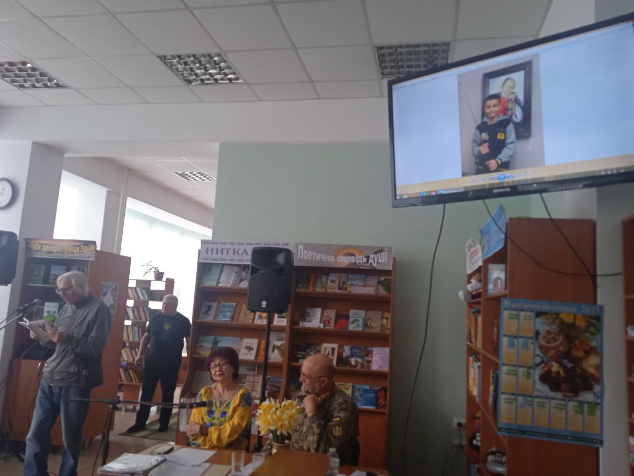 Віктор Залевський в даний час боронить нашу державу, тож його твори, перекладені Людмилою Таран-Пономаренко на українську мову, читав учасник бойовий дій, лейтенант Петро Ворона та сама пані Людмила.