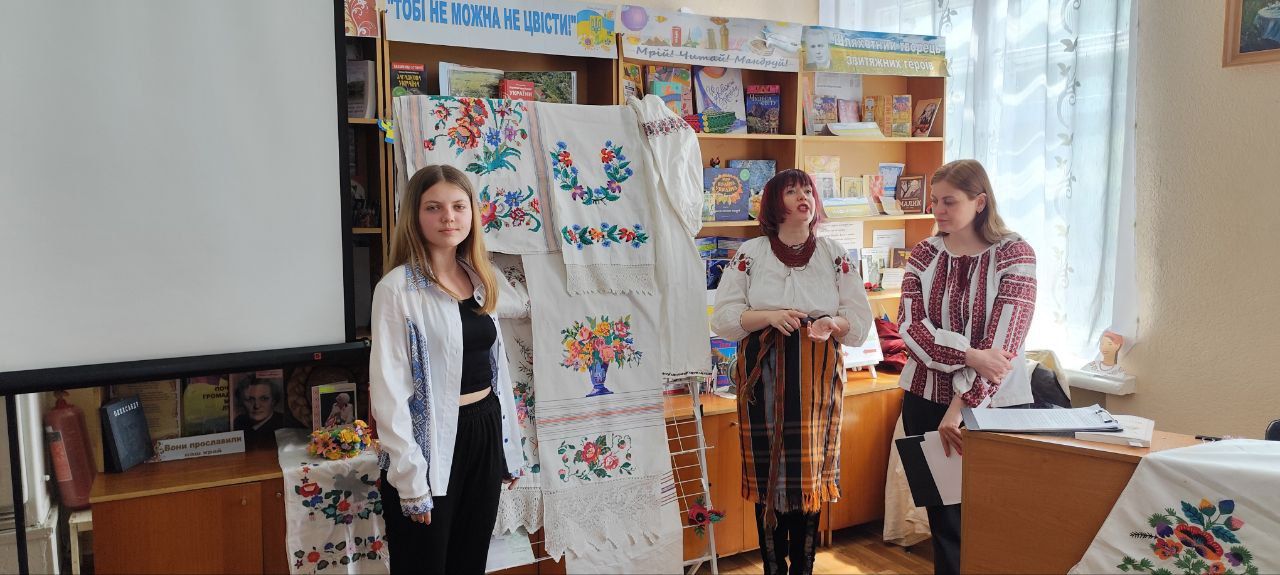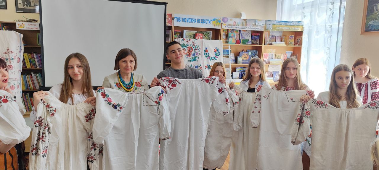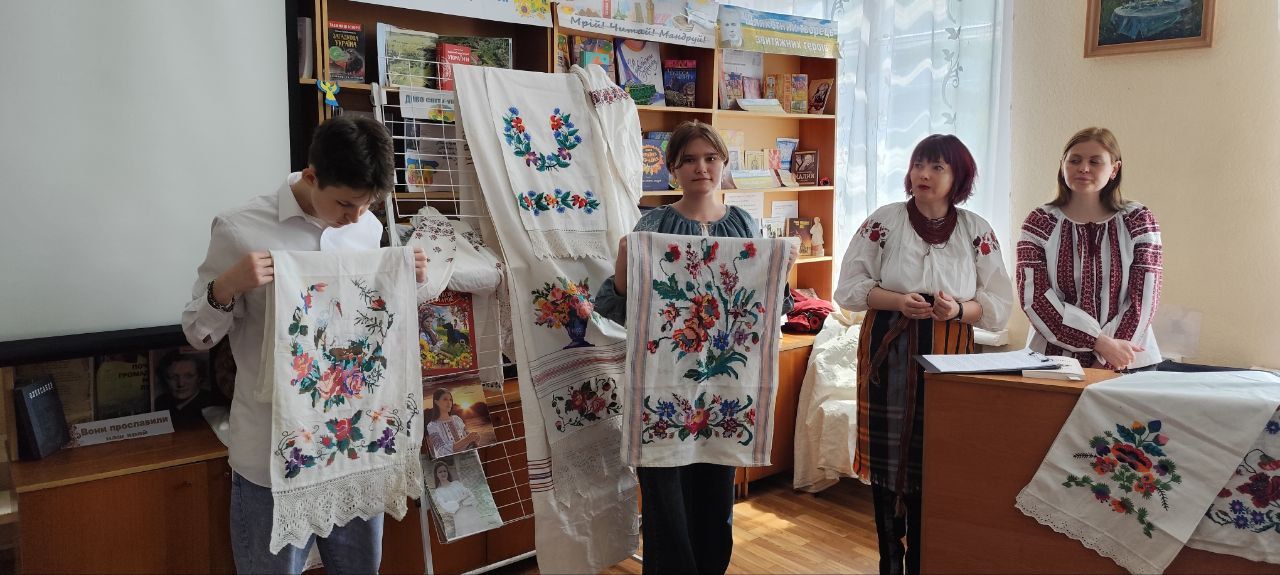 До етнорозмови «Шиття мого роду» долучилися й учасники літературно-історичного клубу «Червлені щити», що діє на базі книгозбірні. Учні не лише обговорили спадок своїх бабусь та прабабусь, а й дізналися призначення рушників та сорочок, походження їх візерунків та орнаментів. «Подивіться на вишиті плечики, що ви бачите? Це так звані крильця – вони притаманні лише лубенським сорочкам. На вашу думку, з якою метою їх шили майстрині?». «Інколи праця вишивальниці могла врятувати життя їй та родині, як це було 33, 47 роки. А одна з наших землячок за збереження спадку нації стала Героєм України», - зазначають ведучі заходу. Учасники дійства отримали солодкі дарунки, оздоблені елементами вишивки — приємний та символічний штрих став завершенням теплого, дійства, сповненого українськими традиціями.