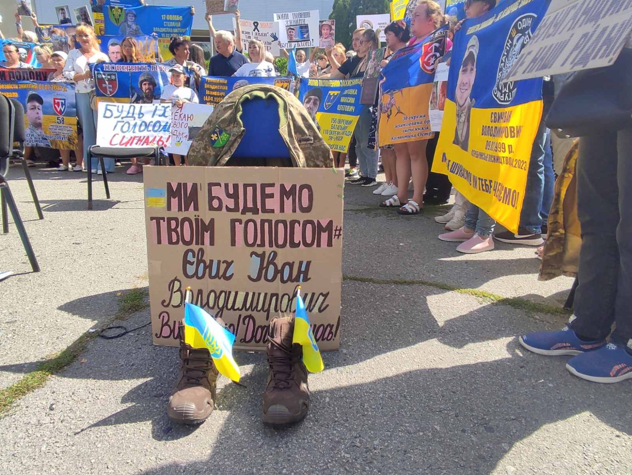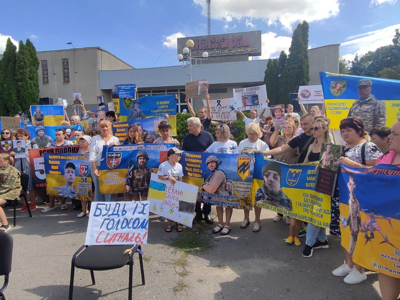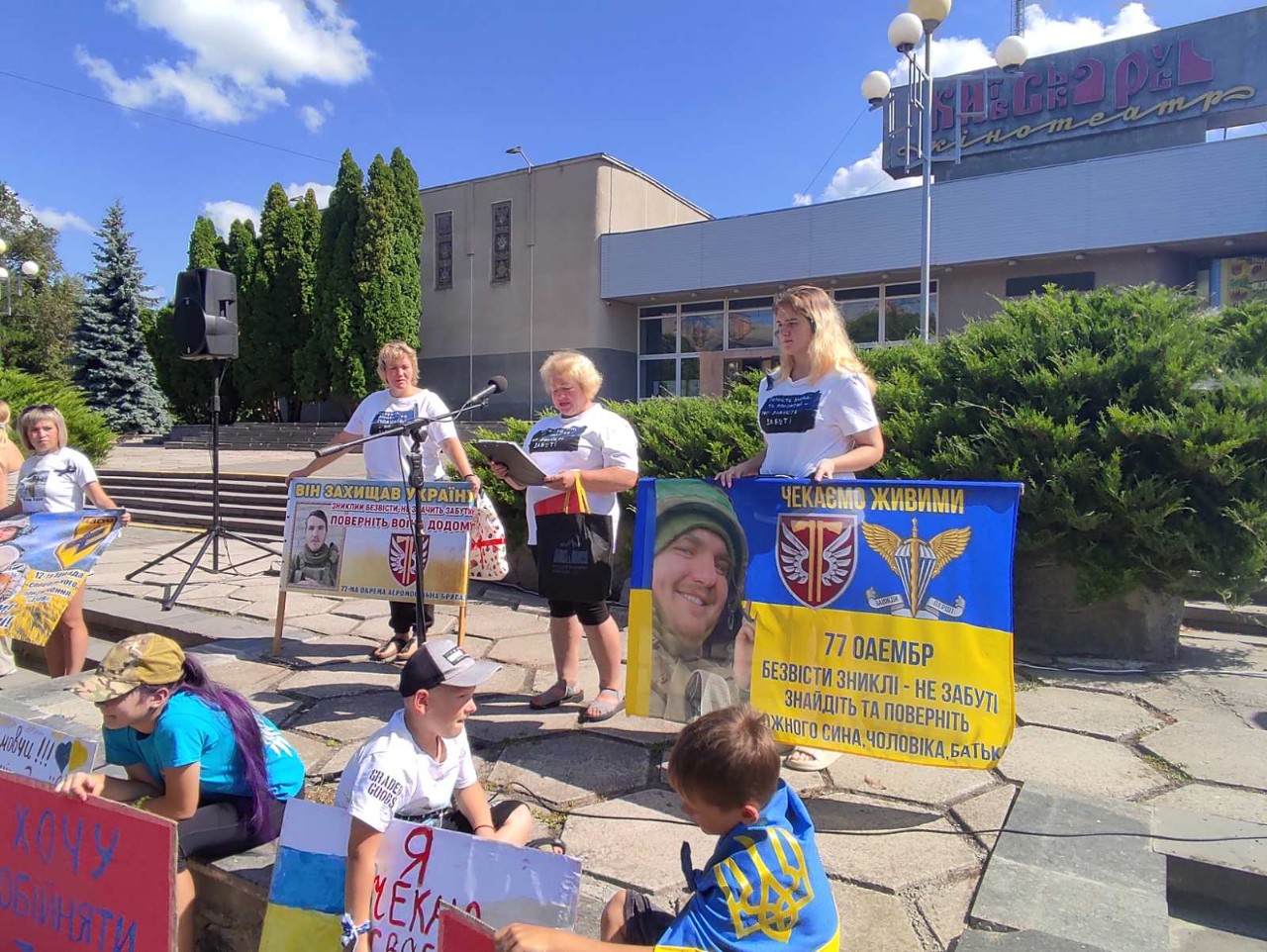 3 серпня майданчик біля кінотеатру «Київська Русь» став місцем болю і надії. Тут відбулася мирна акція-нагадування на підтримку зниклих безвісти та військовополонених, організована родинами тих, хто має такий сумний статус.