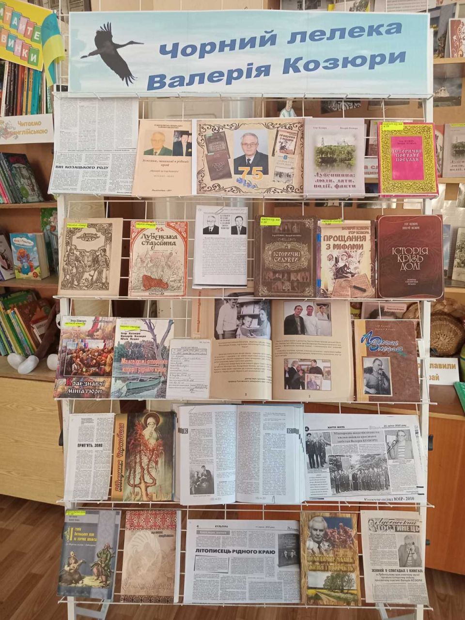 «Книги живуть значно довше людей», - часто любив повторювати Валерій Миколайович. Дивовижний оповідач, викладач історії лісотехнічного коледжу багаторічний друг бібліотек та всіх, кому не байдужа рідна минувшина, буквально жив краєзнавством, попри постійну боротьбу з чорним лелекою хвороби. Він підняв із небуття не одну віху минулого краю – князь Мономах і князі Вишневецькі, знамениті «Історичні постаті Посулля», ластівка нашого краєзнавства - «Лубенська старовина», що вийшла з друку далекого 1994 року й нині є бібліографічною рідкістю… У лубенського літописця було легке перо, дрібний, аж маковий шрифт і до останніх днів життя бажання повертати читачам їхню спадщину. Тож запрошуємо до Публічної бібліотеки імені Володимира Малика на книжкову викладку «Чорний лелека», присвячену світлій пам’яті Валерія Козюри.