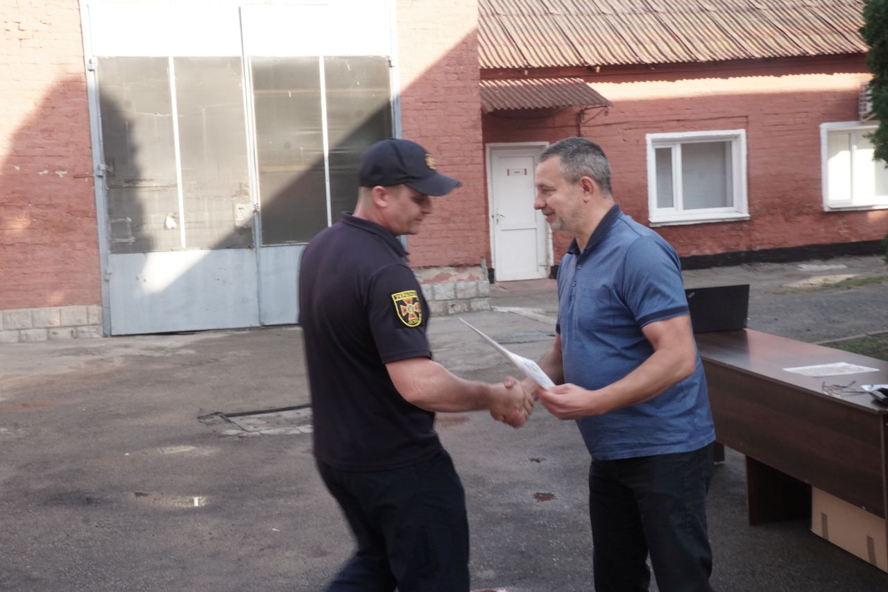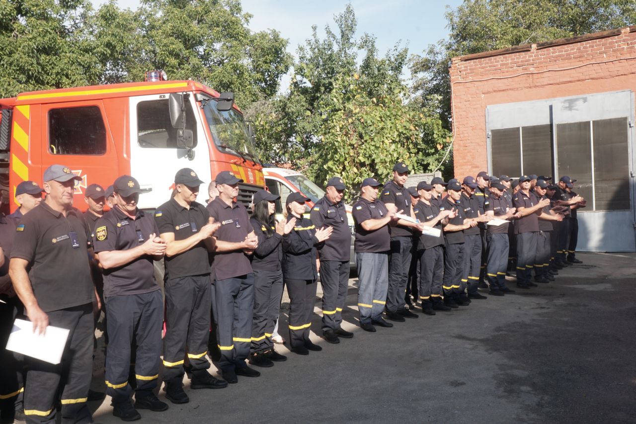 Під час урочистого шикування заступник Лубенського міського голови Олег Соболєв подякував працівникам ДСНС за службу – небезпечну та відповідальну, вручив грамоти та подарунки.