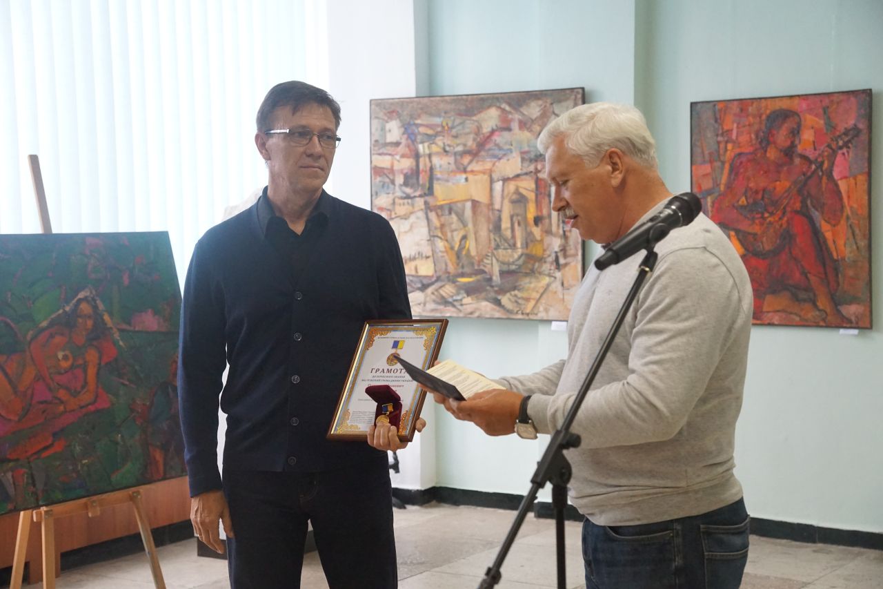 Ще одним приємним моментом творчого заходу стало вручення художнику, члену НСПХУ, лауреату літературно-мистецькрої премії Василя Симоненка та Володимира Малика Олександру Мірошніченку звання «Заслужений громадянин України» від БО Комітет з громадських нагород України м.Київ!