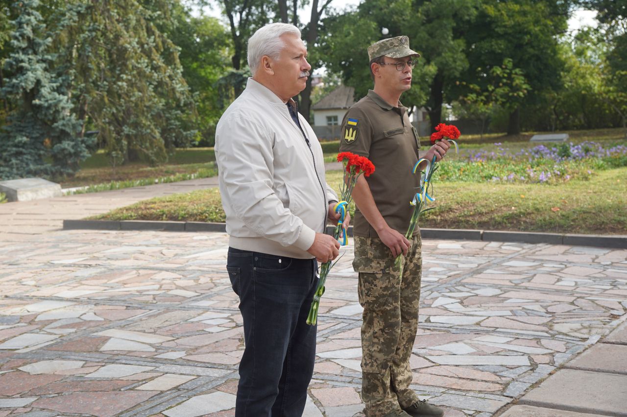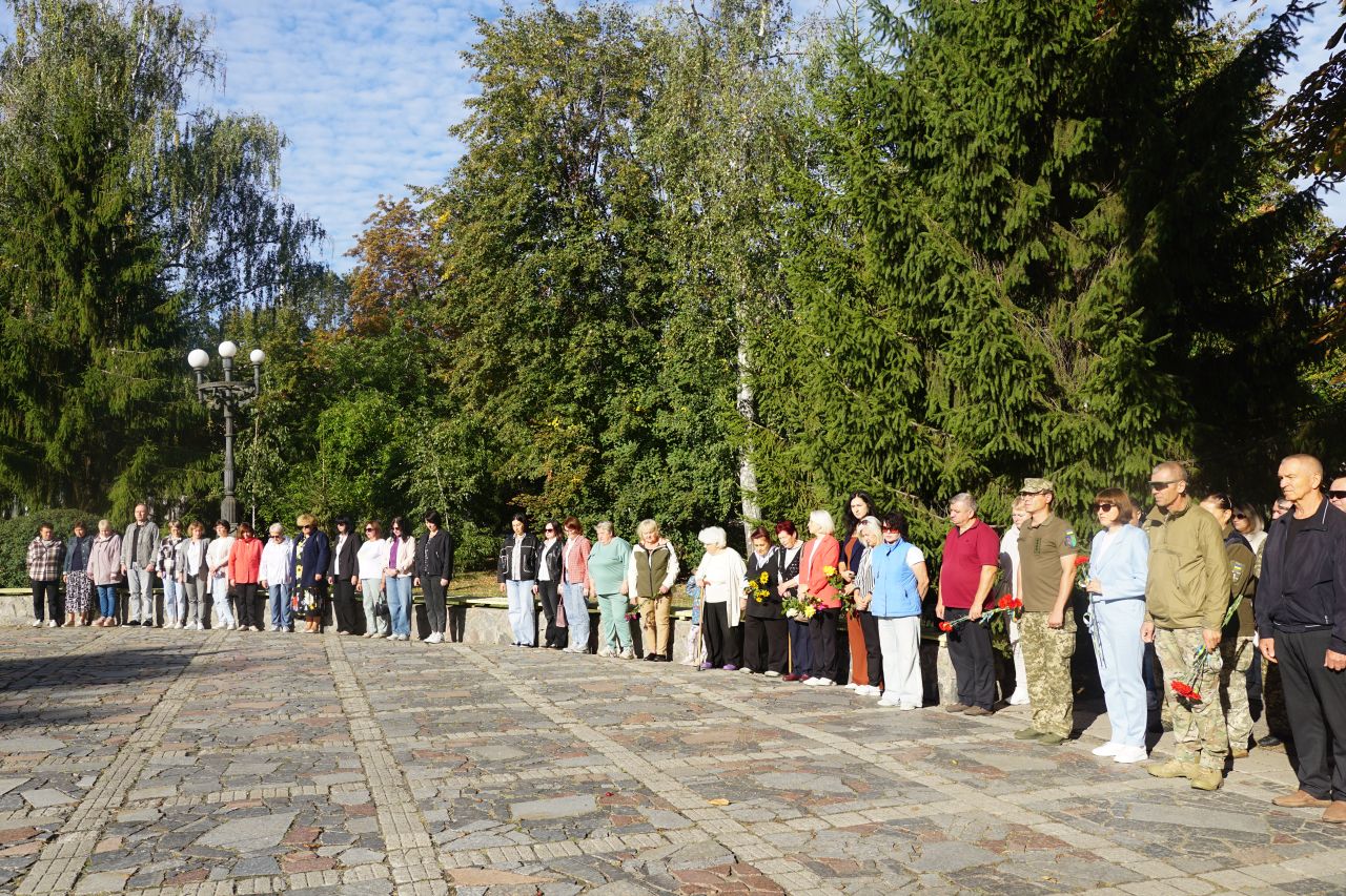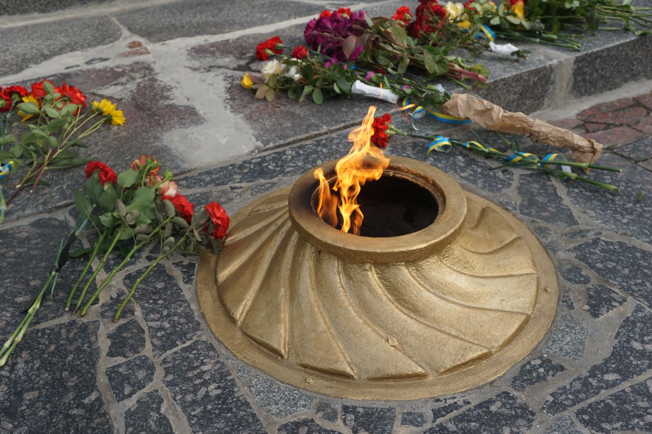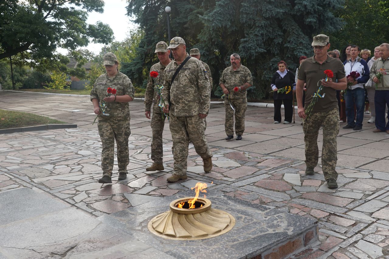 Квіти лягли і до Вічного вогню, що на Площі Слави. Хвилиною мовчання вшанували пам’ять полеглих у Другій світовій війні - тих, хто 82 роки тому у ніч з 18 на 19 вересня вигнали нацистських окупантів з нашого краю.