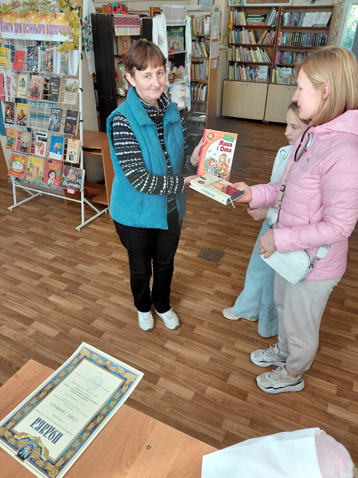Дякуємо читаючій родині - Оксані Гарамась з донькою Софійкою та всім іншим дарувальникам за новенькі книги, які з насолодою читатимуть діти й дорослі! Софійка Гарамась – активна учасниця бібліотечних заходів та конкурсів. Днями юна книголюбка отримала Подяку від Полтавської обласної бібліотеки для юнацтва імені Олеся Гончара за участь у Всеукраїнському конкурсі дитячої творчості «Символіка України: вивчаємо, шануємо, творимо». Вітаємо Софійку!