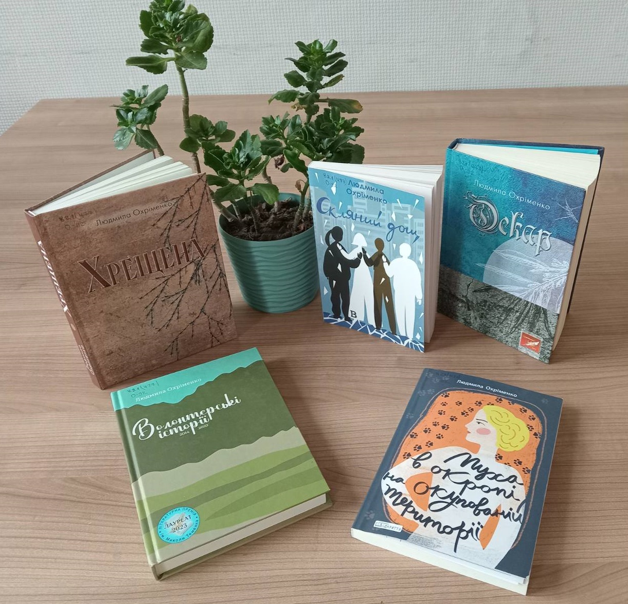 Завдяки цьому бібліотека отримала в дарунок від авторки 5 книг: «Волонтерські історії 2014-2015» «Оскар», «Скляний дощ», «Муха в окропі на окупованій території», «Хрещена». Творчість Людмили Охріменко глибоко пов’язана з подіями російсько-української війни. Українська письменниця активно займається громадською та волонтерською діяльністю, значну частину прибутку від продажу книг вона спрямовується на допомогу ЗСУ. Книги Людмили Охріменко є важливим свідченням доби, фіксуючи реалії сьогодення, силу духу та незламність українського народу.