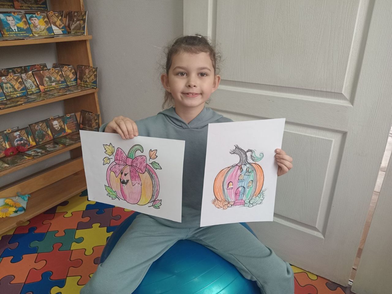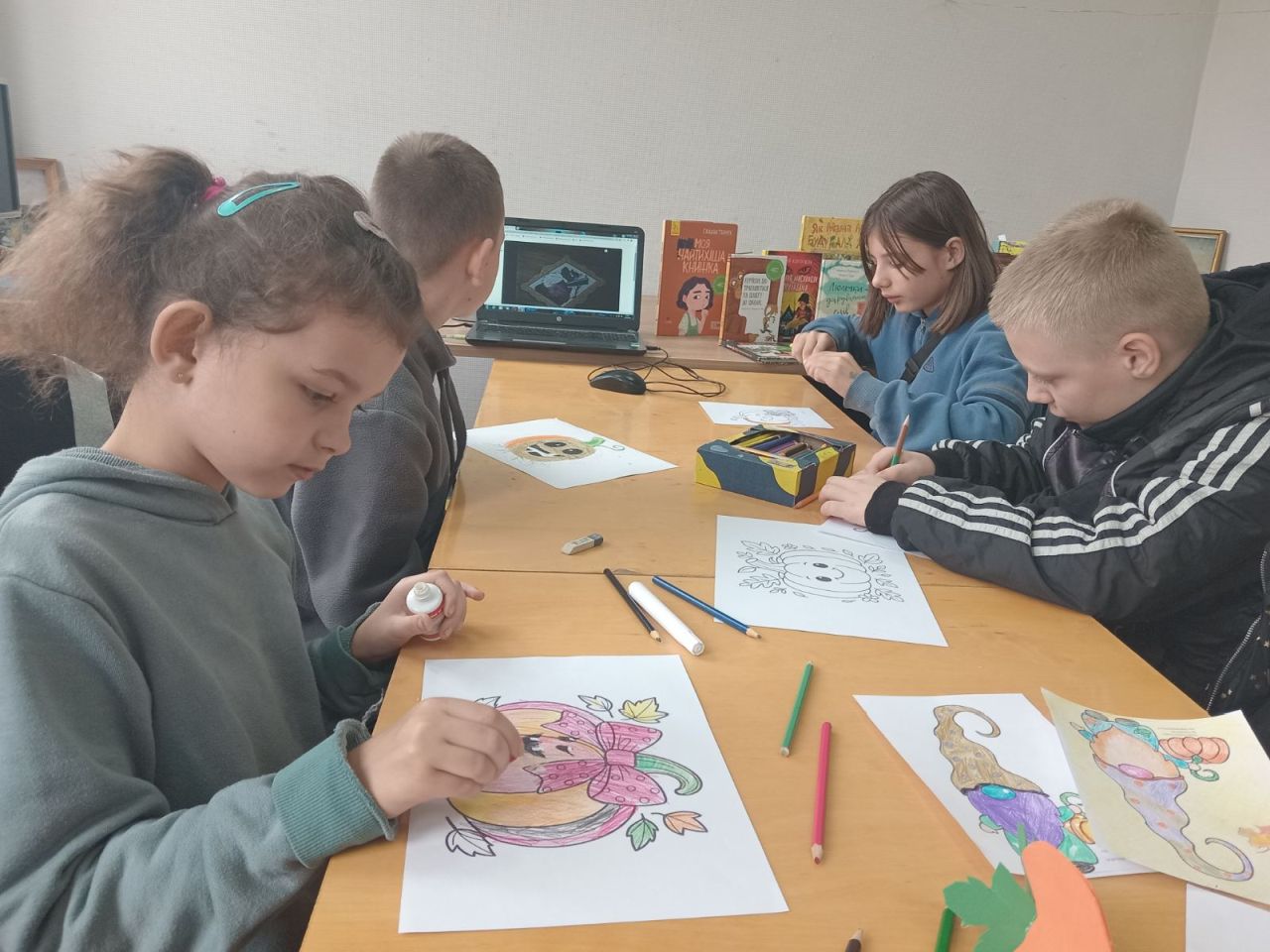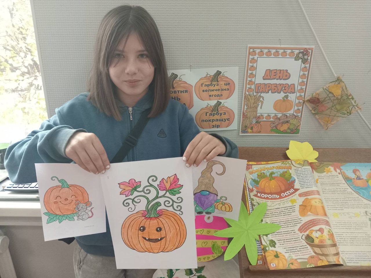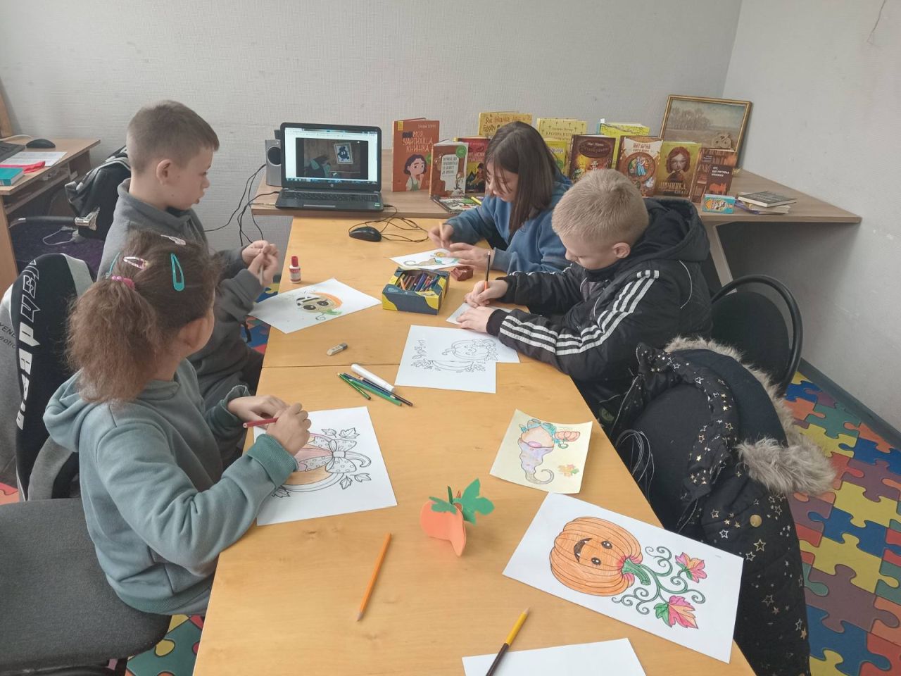 З пізнавального відео «Помаранчевий король осені» діти дізналися чимало цікавих фактів про величезну ягоду та пригадали різні твори, в яких головним героєм був гарбуз. А ще втілили свою фантазію в малюванні, тож книгозбірню прикрасив рядочок яскравих гарбузиків. На завершення заходу «книжкові розумаки» смакували гарбузовою запіканкою та переглядали чудові мультфільми. Було весело, цікаво, корисно і смачно.