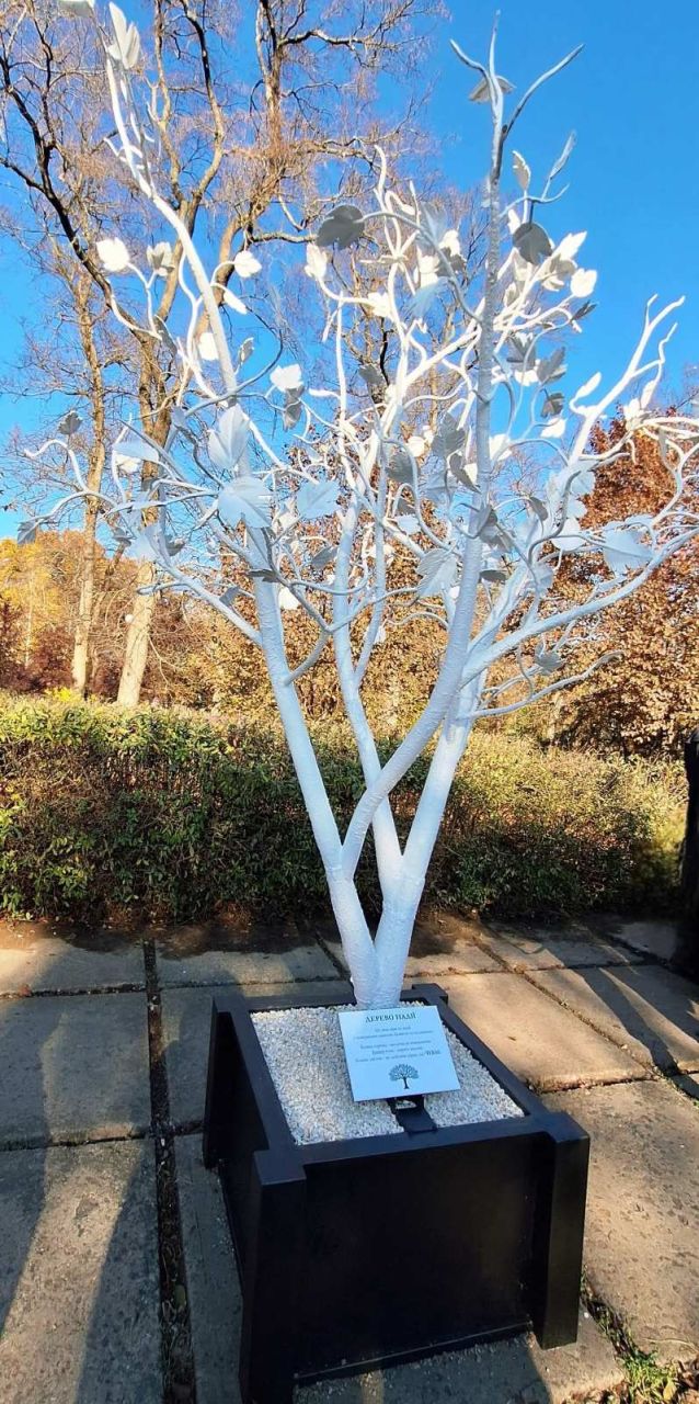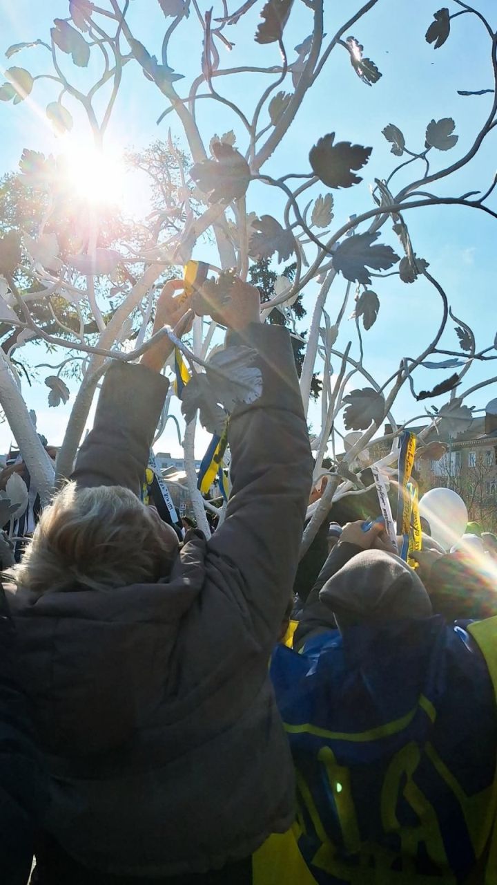 На дереві замайоріли стрічки, а у небо злетіли кульки білого чорного, блакитного кольорів, що символізують біль утрати, віру в диво й любов, що не згасає.