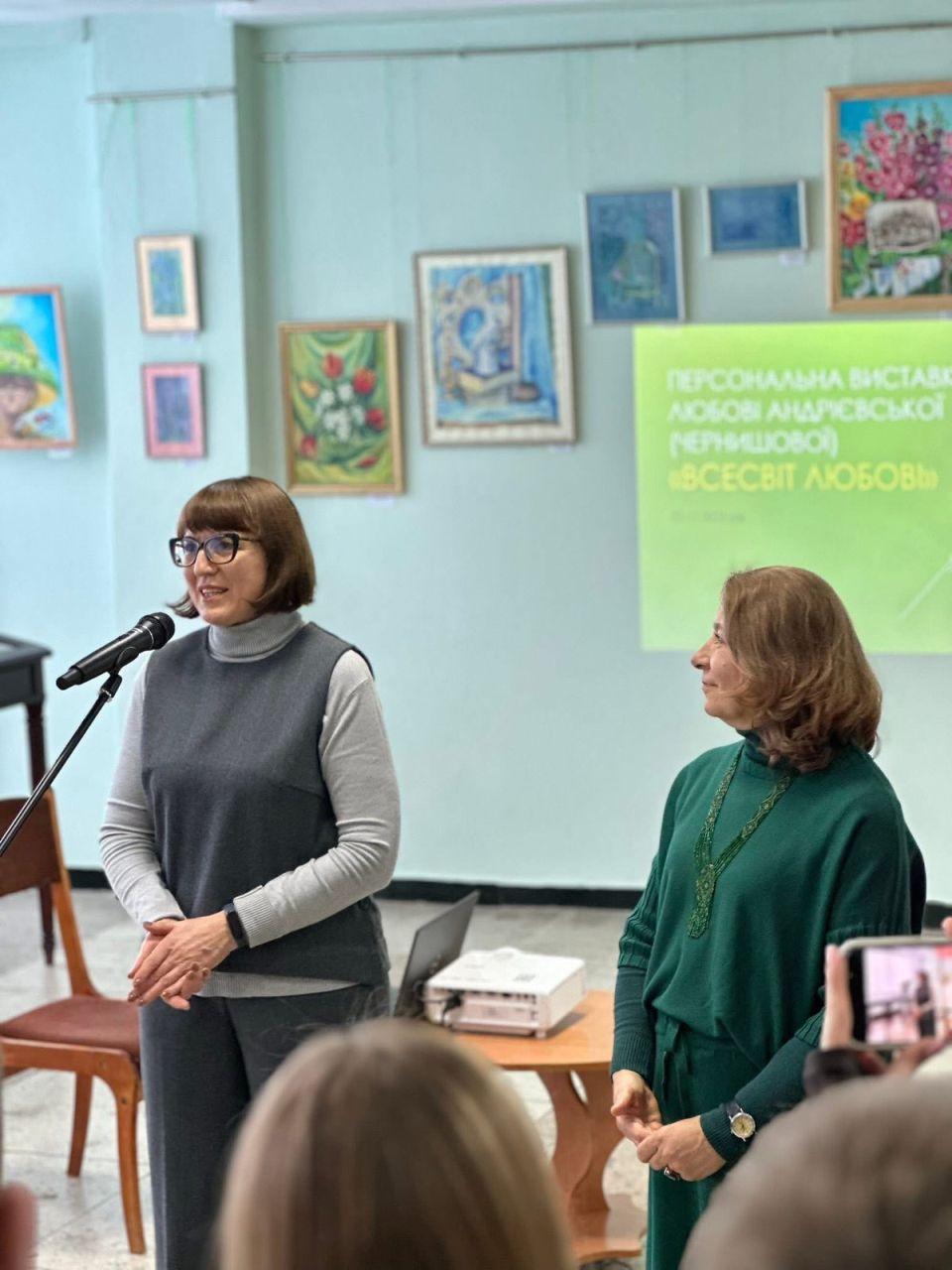 У виставковій залі галереї цього дня було велелюдно. Сюди прийшло багато охочих привітати пані Любов з її творчим дебютом та з ювілейним днем народження: рідні, друзі, колеги по роботі, її вихованці, пересічні лубенці.