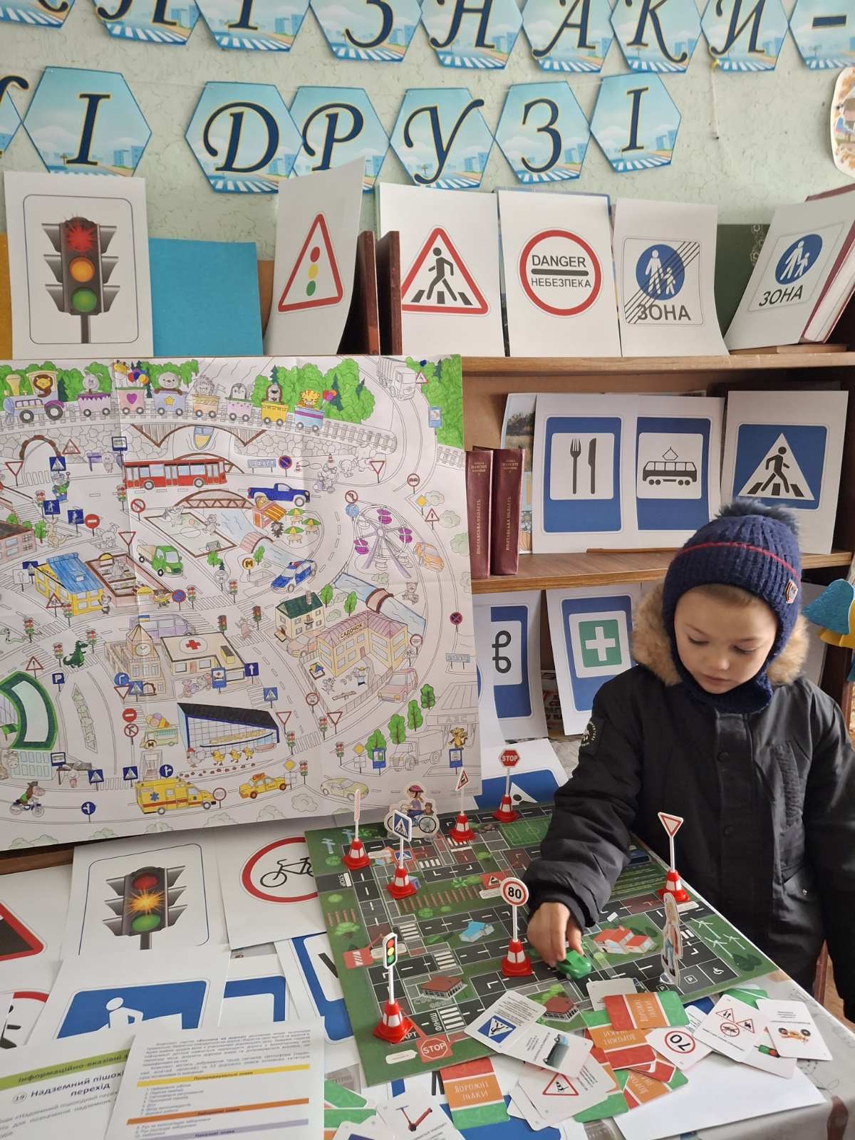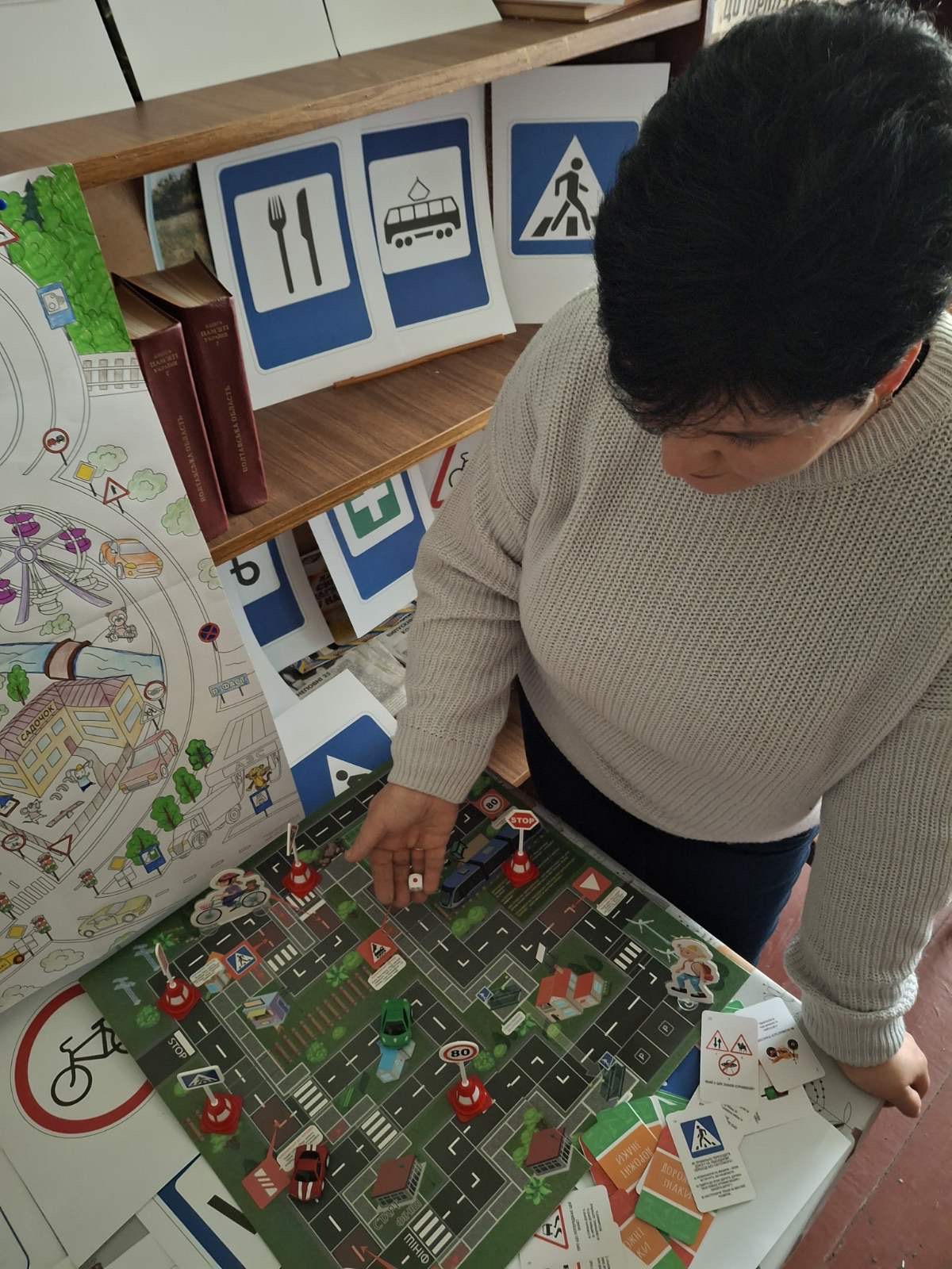 Під час зустрічі учасники, використовуючи розмальовку «Місто мрії», пригадали основні правила дорожнього руху, попрацювали з наочними матеріалами, розв’язали ситуаційні завдання та змоделювали різні дорожні ситуації за допомогою інтерактивної гри «Дорожні знаки — наші друзі». Також встигли почитати, обговорити, пограти й помалювати.