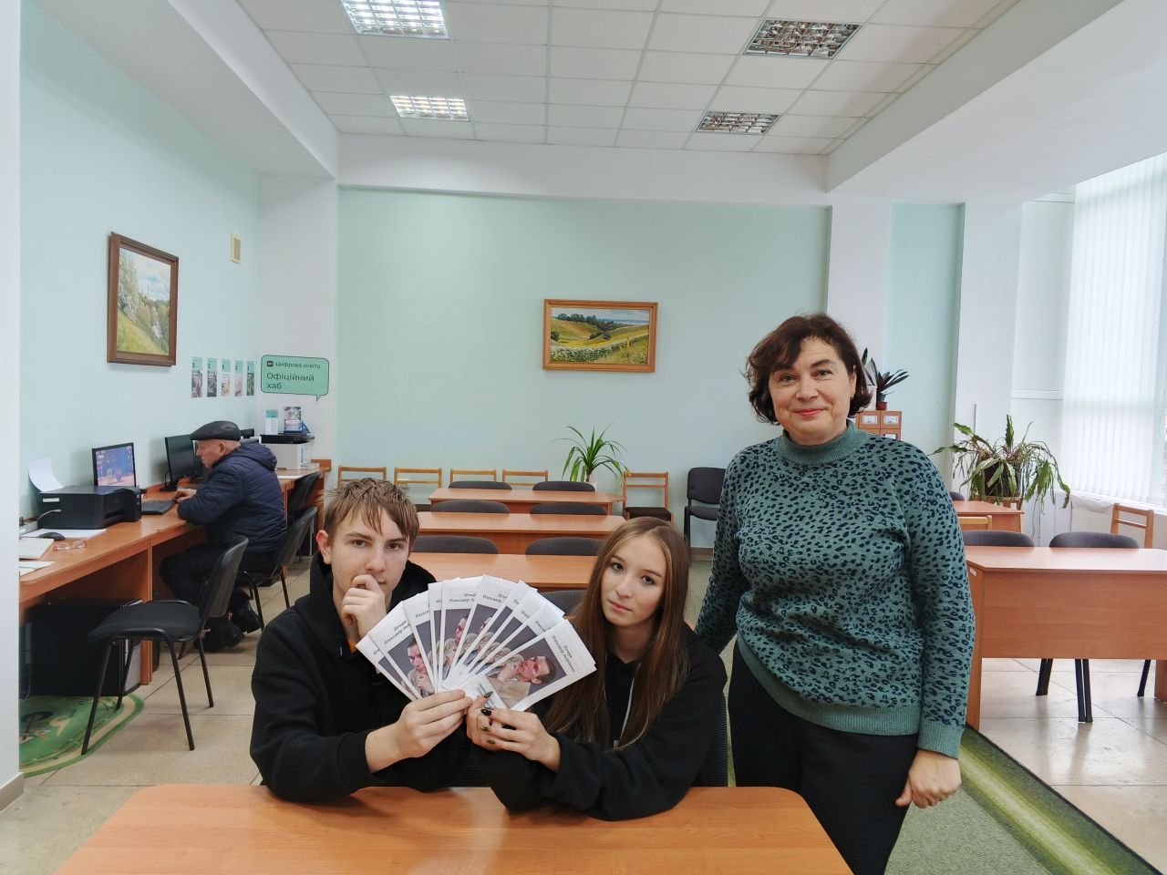Приємно було отримати від юних пошуковців буклети про творчість Олександра Андрійовича, які неодмінно будуть цікавими користувачам бібліотеки.