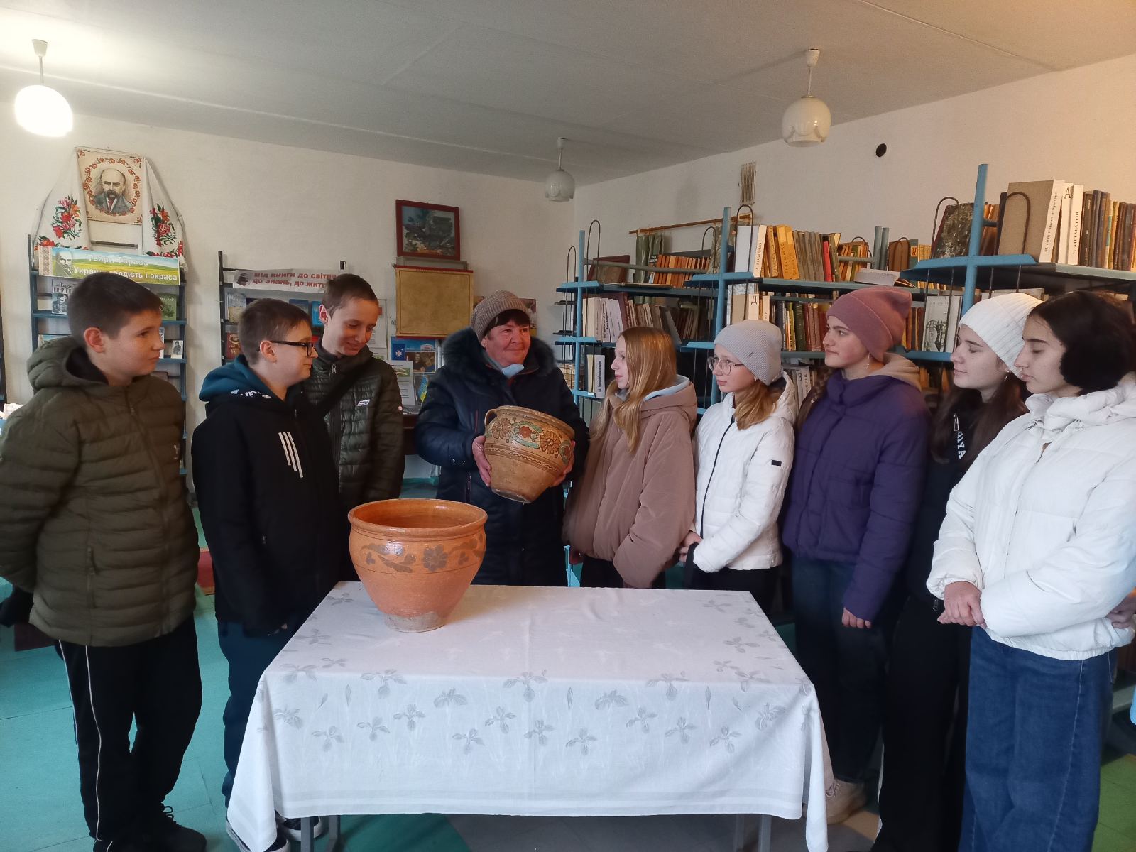18 листопада члени пошукового загону «Калинонька» гімназії імені Героя України Віри Роїк разом із керівниками Шуть Л.В. та Лисенко О.Ю. завітали до філії № 20 Олександрівська сільська бібліотека аби поглибити знання про український побут та традиції.