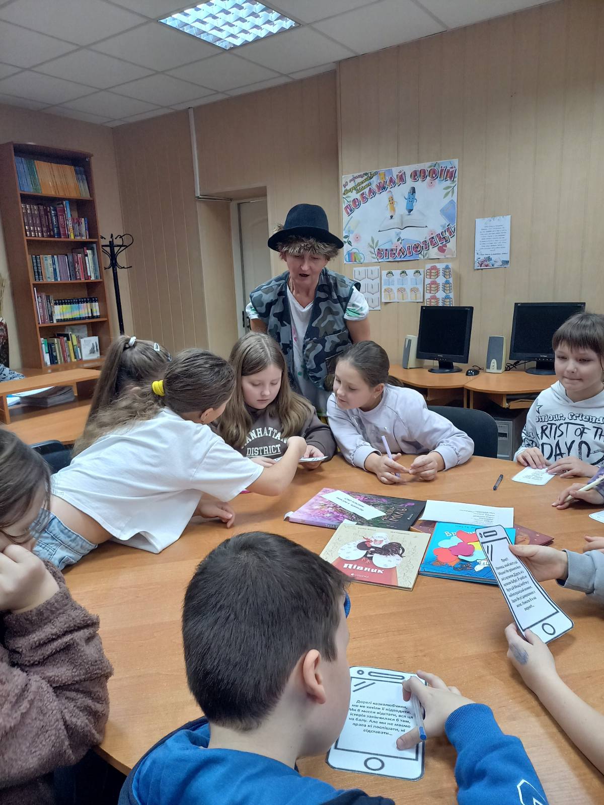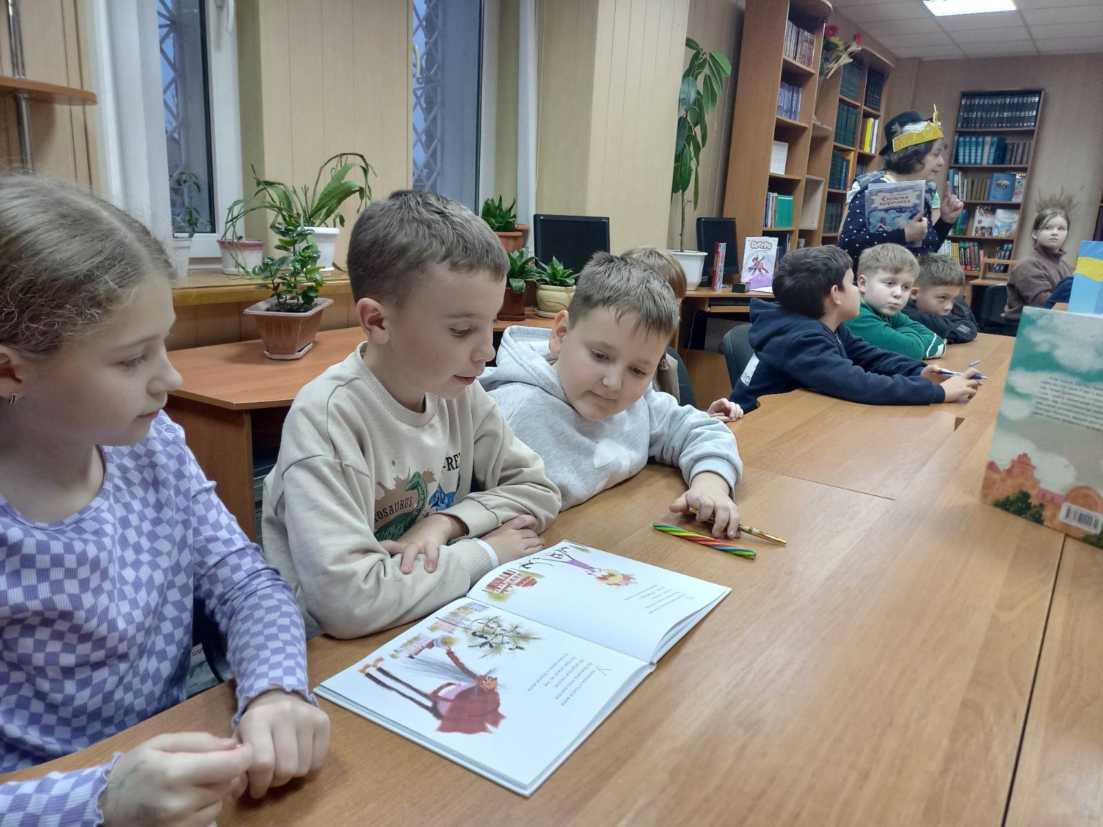 Королева Книг (Сніжана Кириченко) та Котячий Лимерик (Лариса Гончарук) провели читацькі змагання. «Казкознавчики» та «Книголюбчики» вправлялися у знанні українських народних казок, розгадували ребуси «Яка казка заховалася», грали у гру «Загадкові СМС-ки», «Впізнай книжку» та «Реклама улюбленої книжки». А за свої знання та кмітливість отримали солодкі призи. Книги допомагають бути поруч, навіть коли нас розділяють кілометри чи різні життєві шляхи. Спільне читання – спосіб говорити мовою серця поруч і на відстані, знайти одне одного між сторінками улюблених книжок.