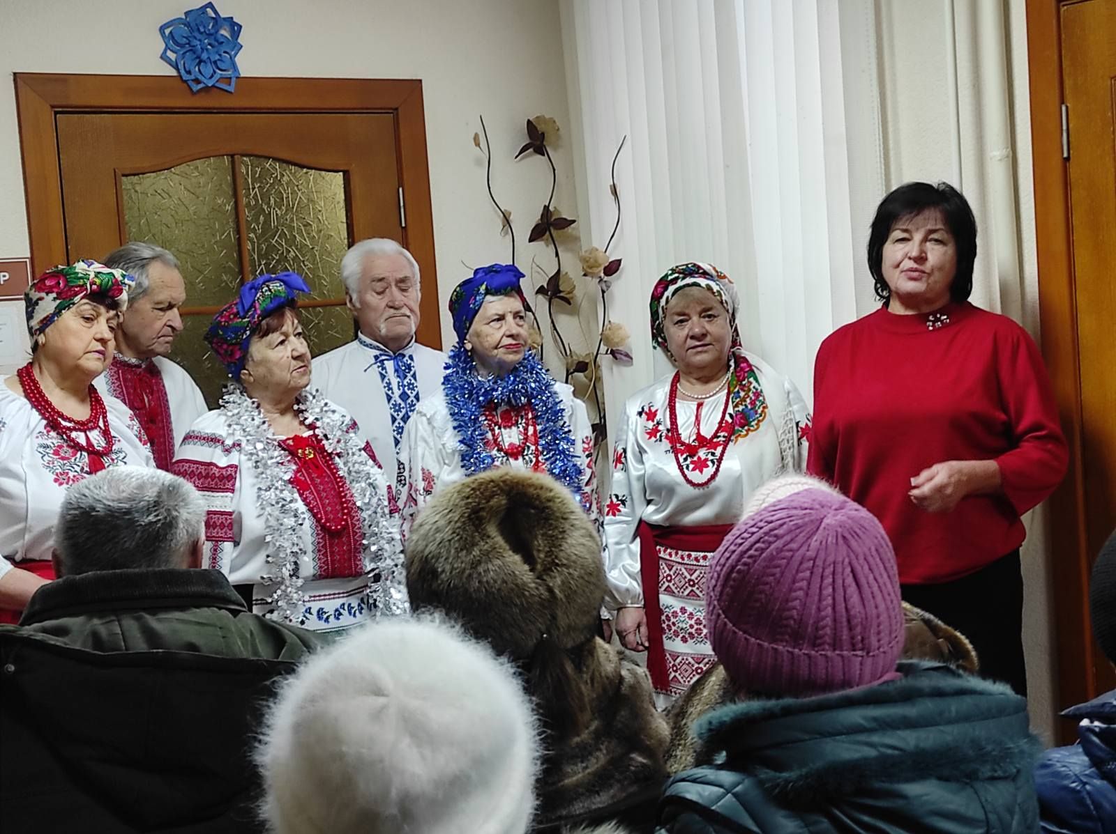 На початку заходу з новорічними словами-привітаннями звернулася до присутніх директор територіального центру соціального обслуговування Наталія Сухонос. Вона привітала з різдвяними святами і наступаючим Новим роком та побажали всім присутнім в залі міцного здоров'я, натхнення, сімейного добробуту, радісних посмішок, любові, а найголовніше, щоб у 2026 році нарешті настав мир у нашій країні.