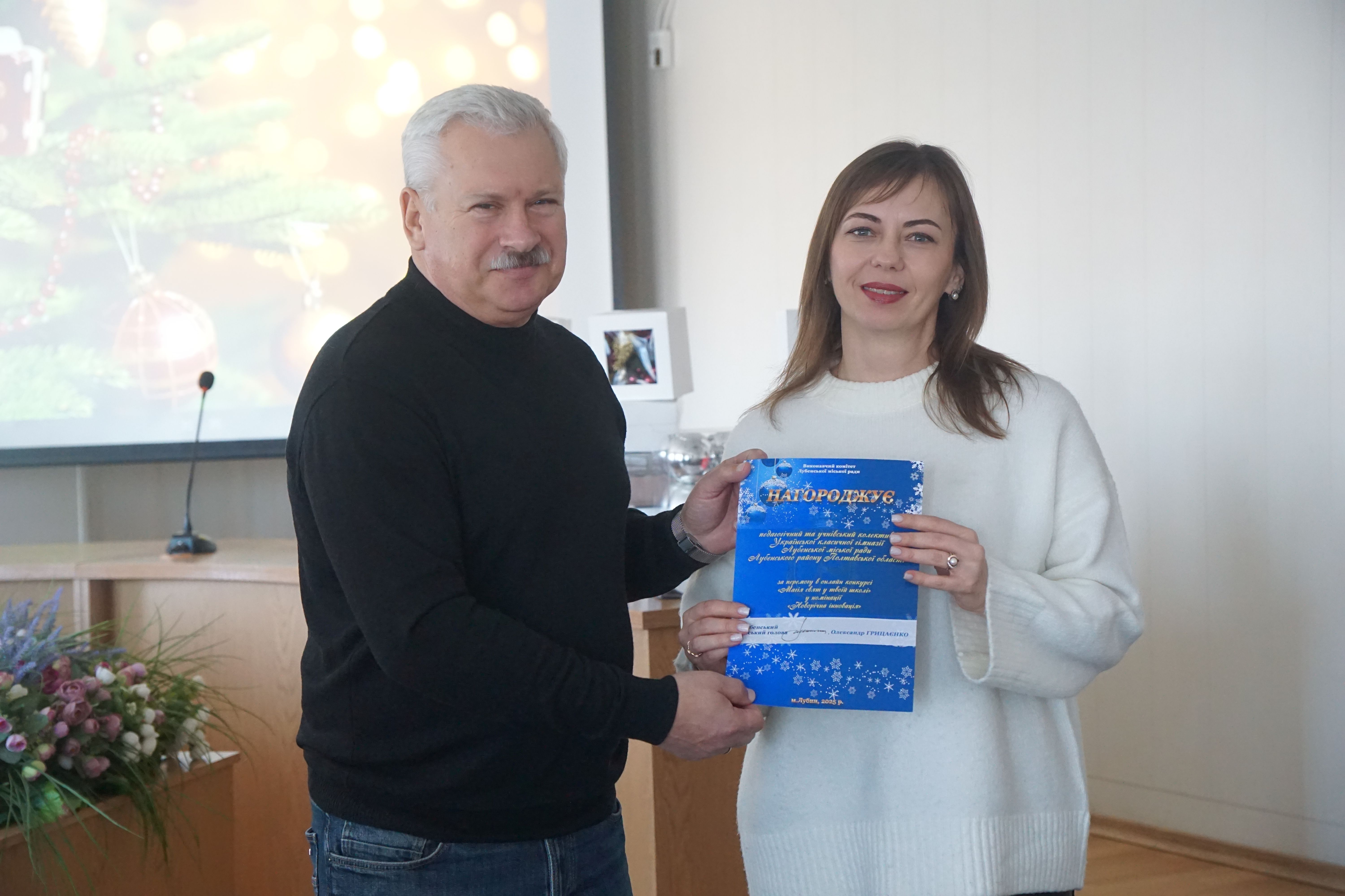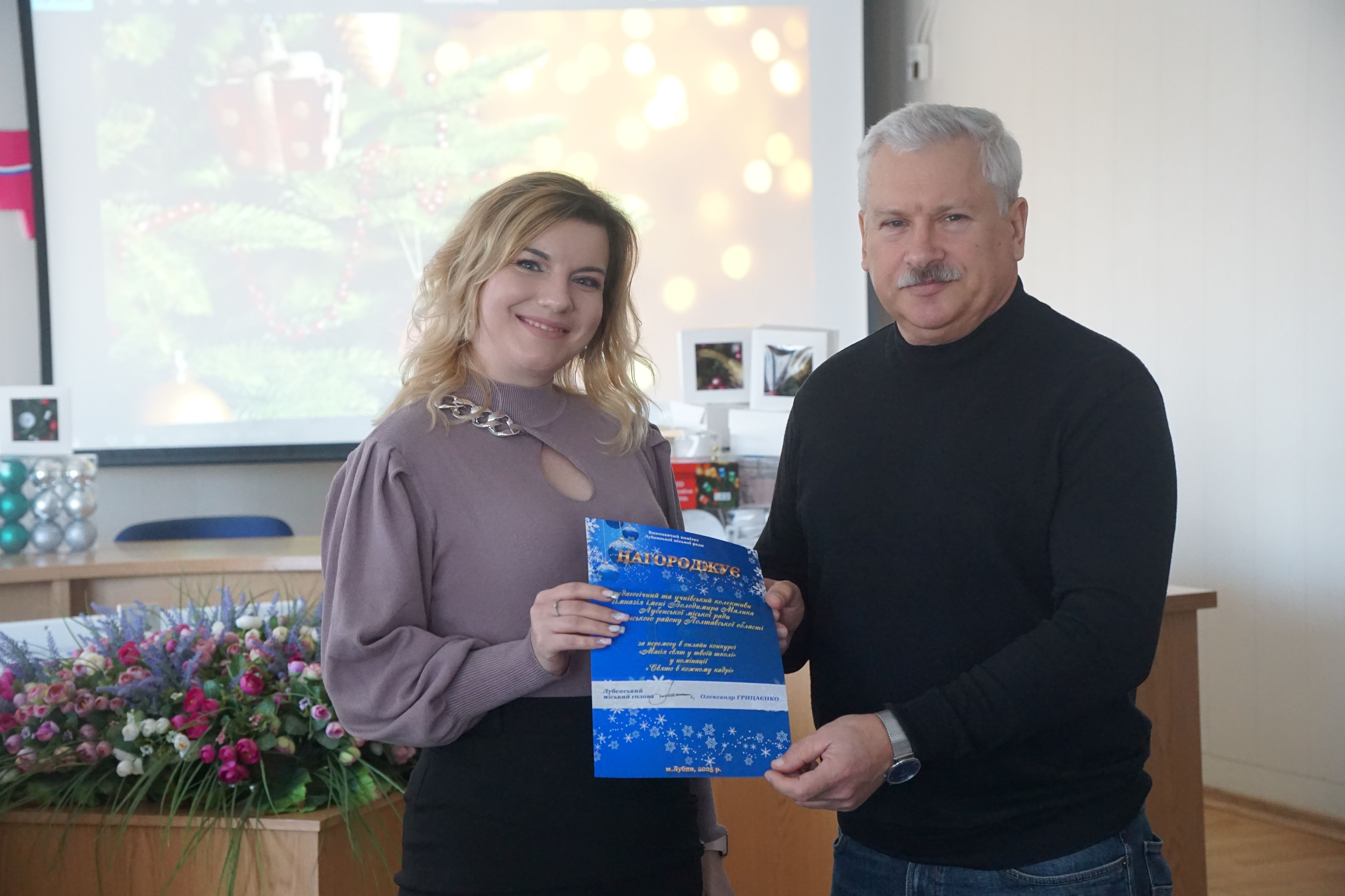 30 грудня, напередодні Нового року, у Лубенській міській раді відбулося підведення підсумків новорічного конкурсу «Магія свят у твоїй школі». Освітні заклади Лубенської громади у відеоформаті продемонстрували, як у гімназіях та ліцеях чекали новорічних свят, як готувалися та чим були готові здивувати. Усі презентації сповнені креативу, щирості та вміння зустрічати свято по-особливому. Звісно, це не просто в умовах війни, повітряних тривог, відсутності електроенергії. Але навчальні заклади із поставленими завданнями справилися на відмінно. А діти відчули магію свята у цікавих квестах, новорічних фотозонах та сміливих завданнях.
