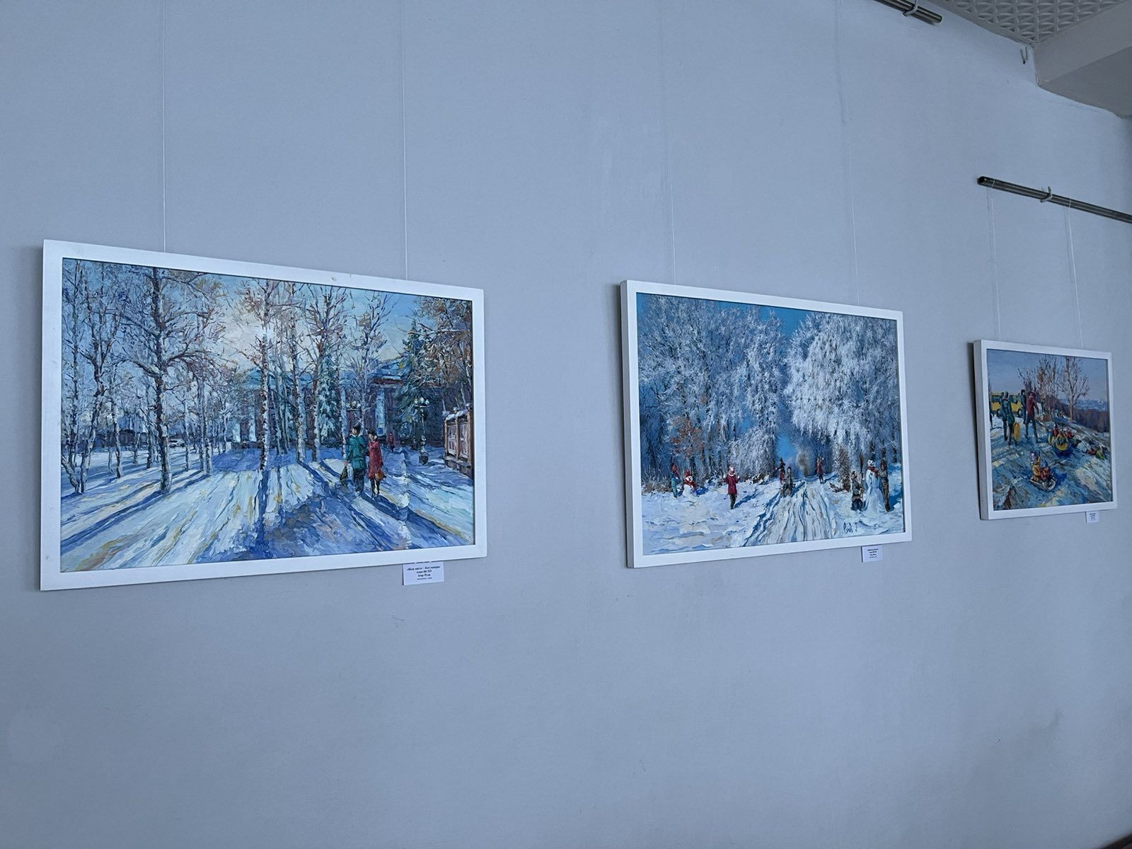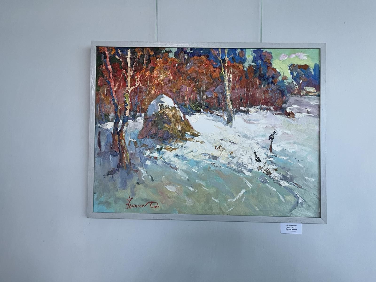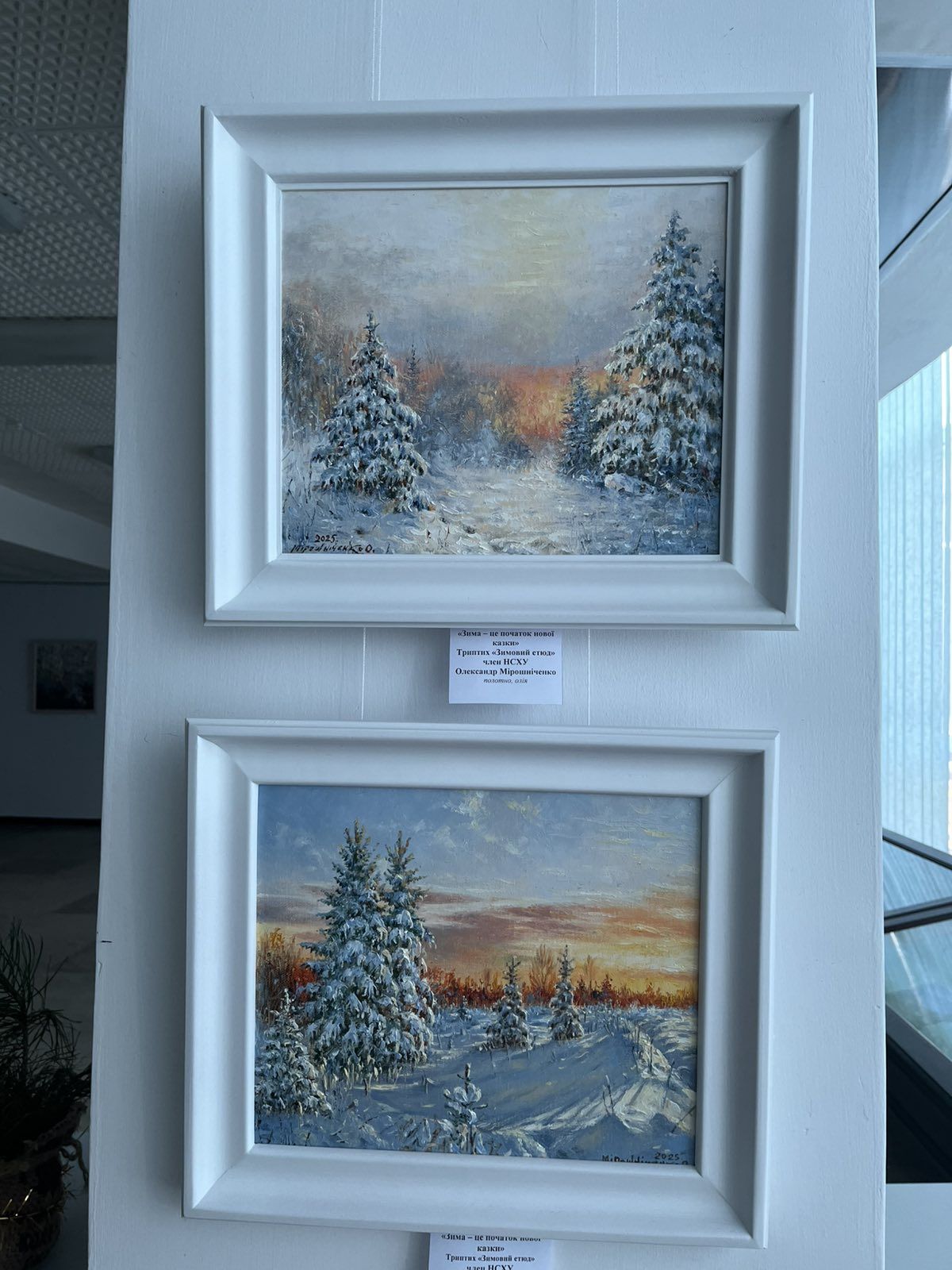 У залі галереї можна було побачити полотна зимової пори, що народжені з тиші снігопаду, подиху морозного ранку, тихої поезії зими. Зима тут говорить барвами кольорів, світла, душі та любові до життя.