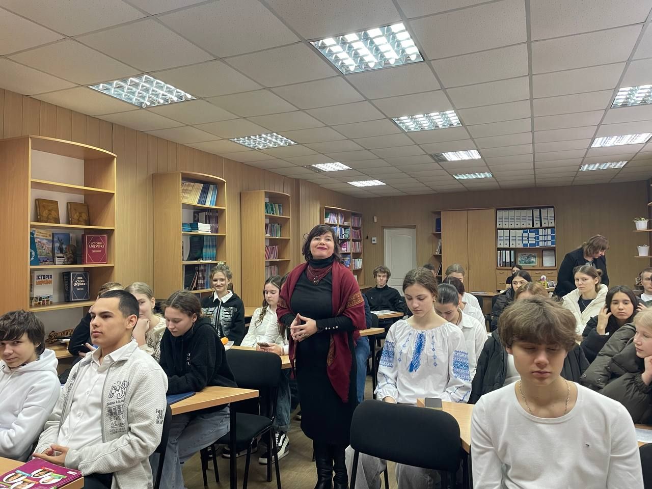 На день Соборності України фахівець Лубенської публічної бібліотеки імені Володимира Малика Марина Кононенко завітала на запрошення викладача історії Наталії Антоненко до ресурсно-інформаційного центру Академічного ліцею «Європейський». На розширеному засіданні учасники літературно-історичного клубу «Червлені щити» розглянули та проаналізували походження слова «соборність» та провели паралелі з минулою топонімікою нашого міста. На хронологічній палітрі постали національно-свідомі особистості України, котрі об’єдналися навколо виходу першої україномовної газети «Хлібороб».