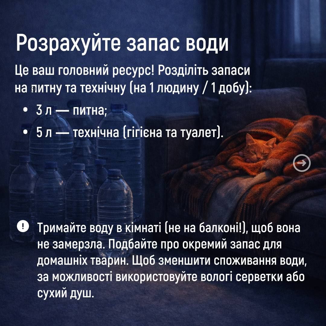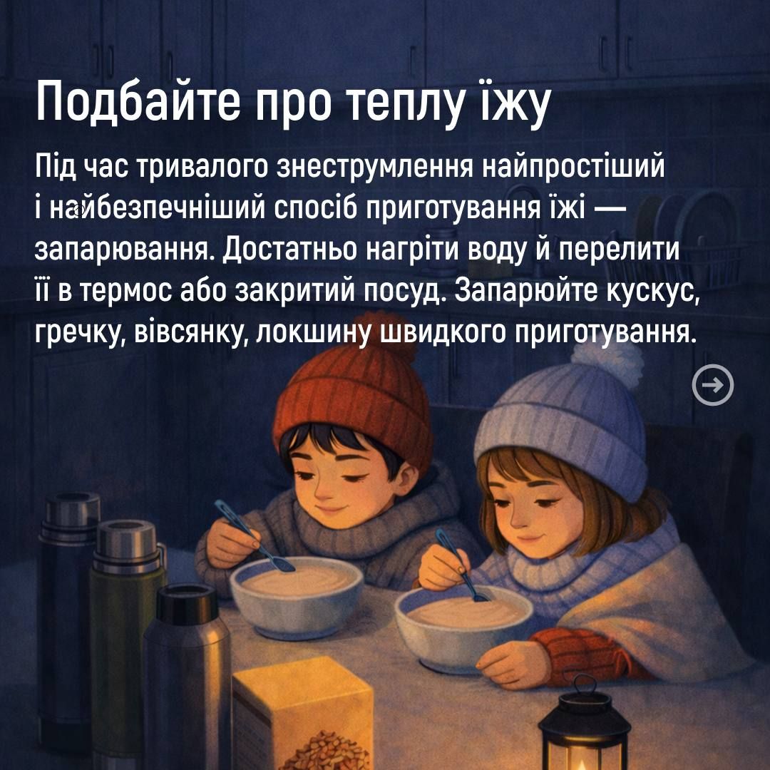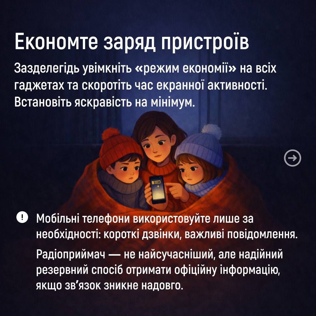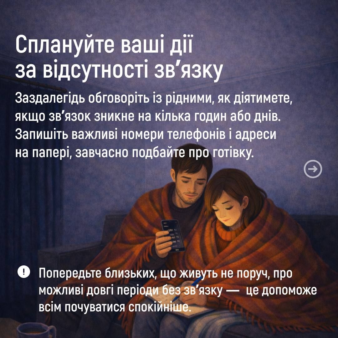 Зібрали поради, як налагодити побут, зберегти здоров’я та залишатися на зв’язку навіть у найтемніші часи. Гортайте картки, щоб знати, як діяти!