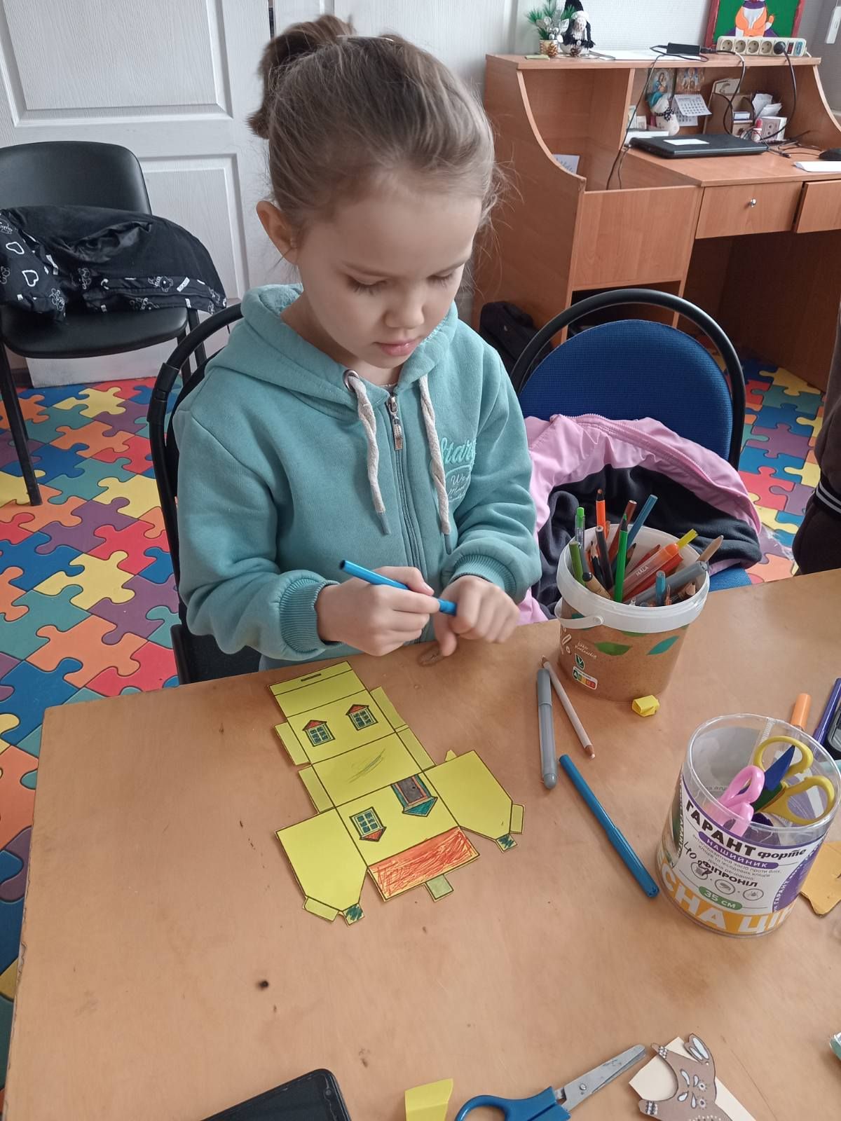 На творчому майстер-класі діти виготовляли будиночок своєї мрії, де кожна деталь була наповнена фантазією та теплом. Разом з дорослими відвідувачі книгозбірні читали книги, мріяли про світ без війни, про яскраве світло в будинках. До речі, в нашій бібліотеці ніколи не буває сумно: для активного відпочинку дітей маємо настільні та напільні ігри, м’ячі для фітнесу, конструктор. Швидко промайнув час дитячого дозвілля. Тепла атмосфера, творчість і турбота — саме за це дітлахи так люблять бібліотечні зустрічі.