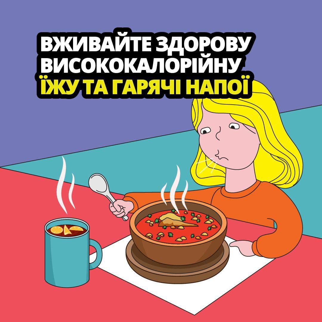 Вживайте здорову висококалорійну їжу та гарячі напої.