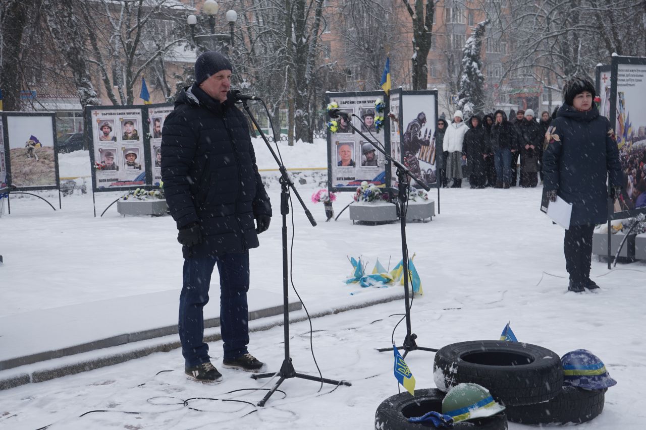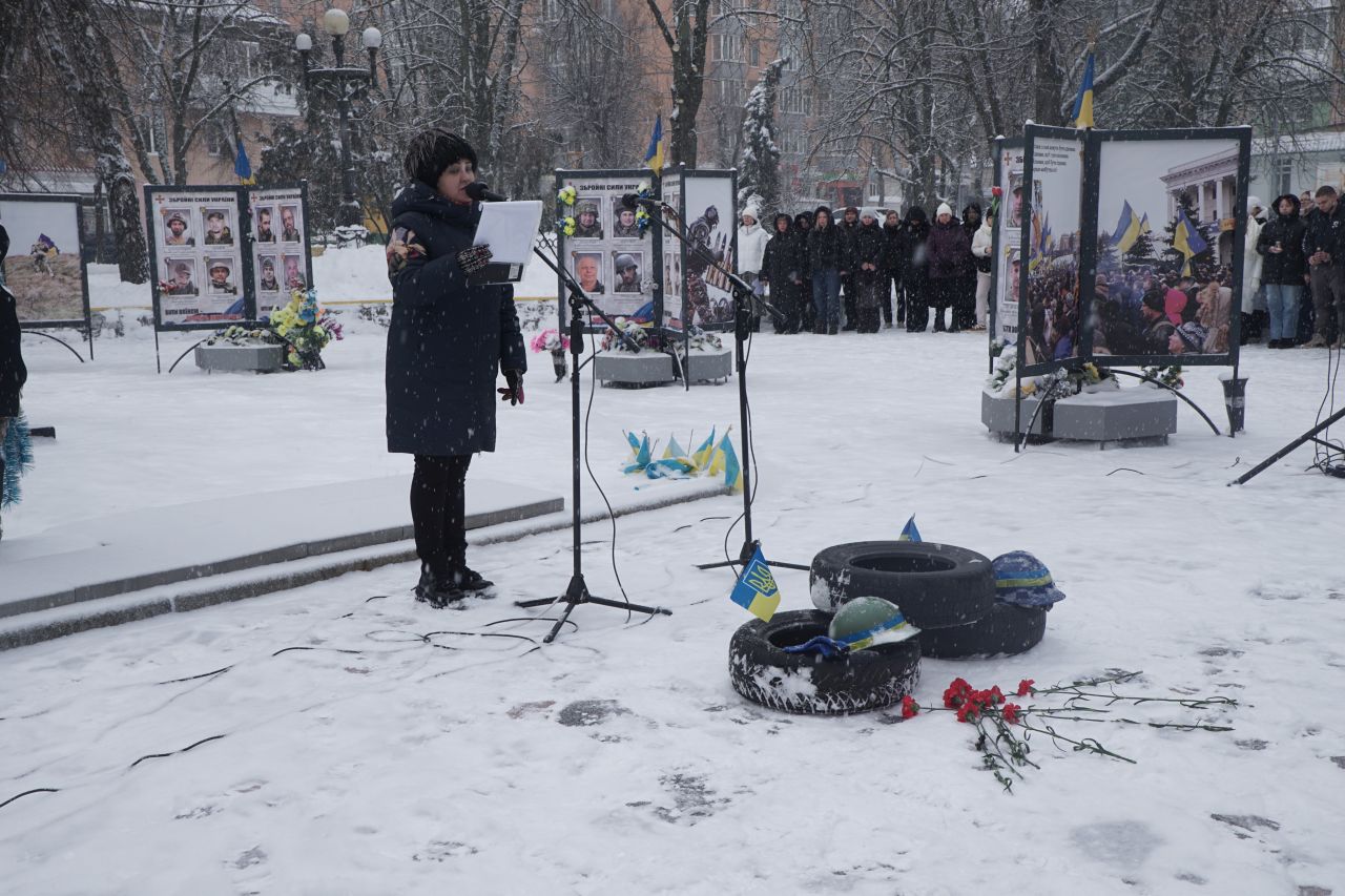 Присутні схилили голови у хвилині мовчання за тими, хто віддав життя за Україну на Майдані та за всіма воїнами, які в небесному легіоні сьогодні.