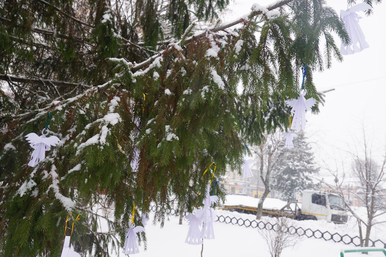 Учасники зібрання долучилися до акції «Янголи пам’яті»: на деревах розвісили паперових янголів – символ болючих втрат, пам’яті та віри в перемоги світла над темрявою.