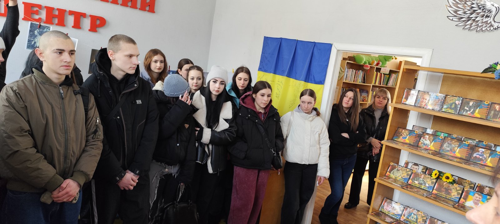 20 лютого ми вшановуємо пам’ять Героїв Небесної Вотні. Вони стали символом нашої боротьби за гідність, свободу та незалежність, поклавши свої життя за майбутнє України. Нині Небесні Вартові вказують Україні шлях свободи та державності у найважчі часи випробувань. Їхній подвиг – це нагадування за що ми боремось сьогодні. Цього року пам'ять героїв Небесної Сотні вшановуємо гаслом: «Герої першої перемоги у битві, що триває». З нагоди цієї дати фахівці Публічної бібліотеки імені Володимира Малика провели для студентів ВСП «Фаховий коледж ДЗ «Луганський національний університет імені Тараса Шевченка» та Старобільського фахового коледжу урок патріотизму «Небесна Сотня – янголи свободи».