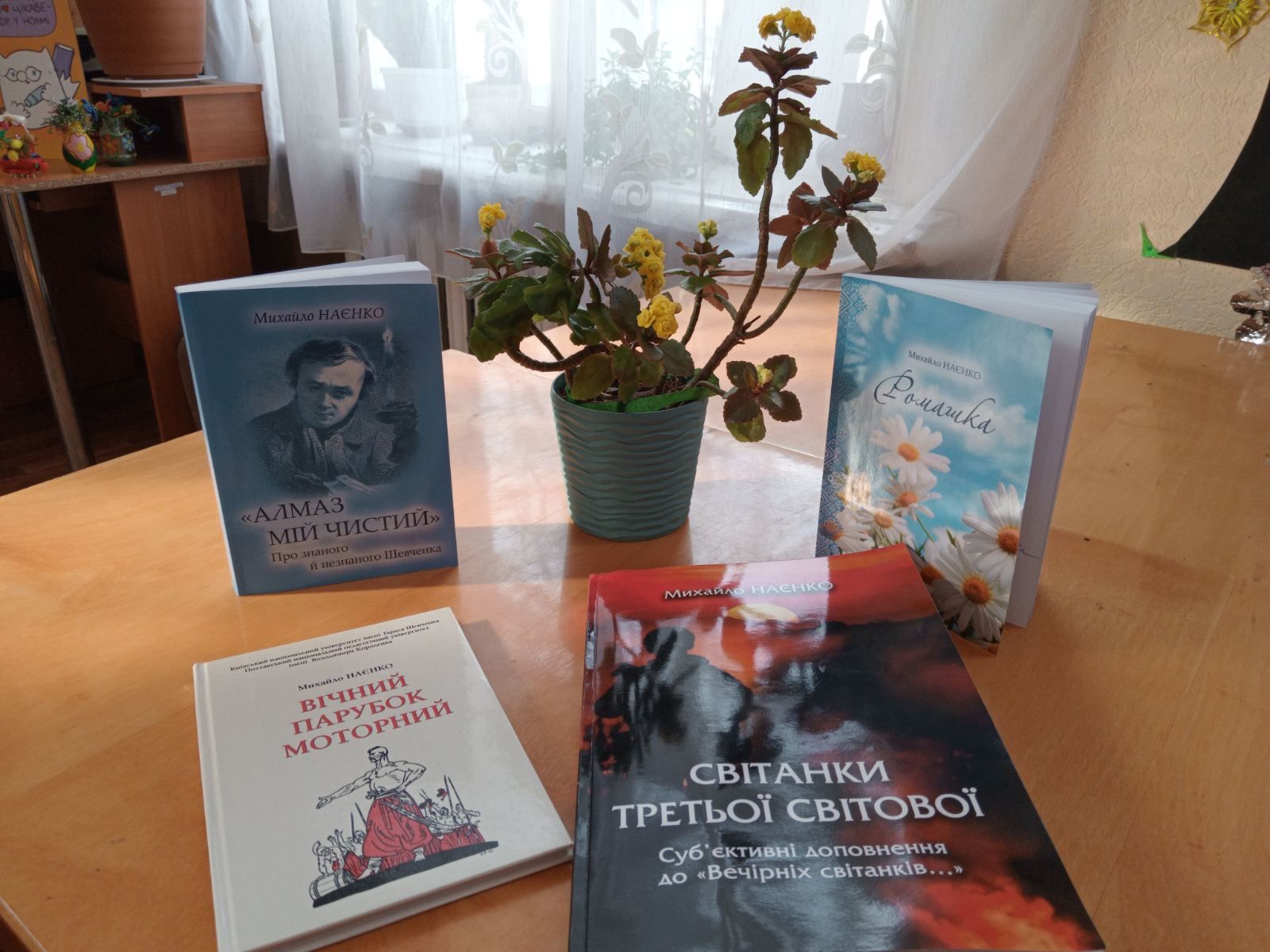 Нещодавно фонди Публічна бібліотека імені Володимира Малика поповнилися справжніми інтелектуальними скарбами! Подарував свої твори відомий вчений-філолог Михайло Кузьмович Наєнко. Автор книг — постать знакова для нашої громади, адже його юність пройшла в Лубнах і саме він став лауреатом літературно-мистецької премії імені Володимира Малика у 2026 році у номінації «Краєзнавство та народна творчість». Високу відзнаку автор отримав за глибокі та ґрунтовні дослідження постаті Кобзаря «"Алмаз мій чистий": Про знаного й незнаного Шевченка» та Івана Котляревського «Вічний парубок моторний». Саме їх вчений-літературознавець презентував бібліотеці. Окрім премійованих видань, автор передав у дар ще кілька своїх вагомих робіт, що відображають творчу багатогранність письменника: науково-популярне видання «Світанки третьої світової» Суб’єктивні доповнення до «Вечірніх світанків…» та збірку художніх творів «Ромашка».