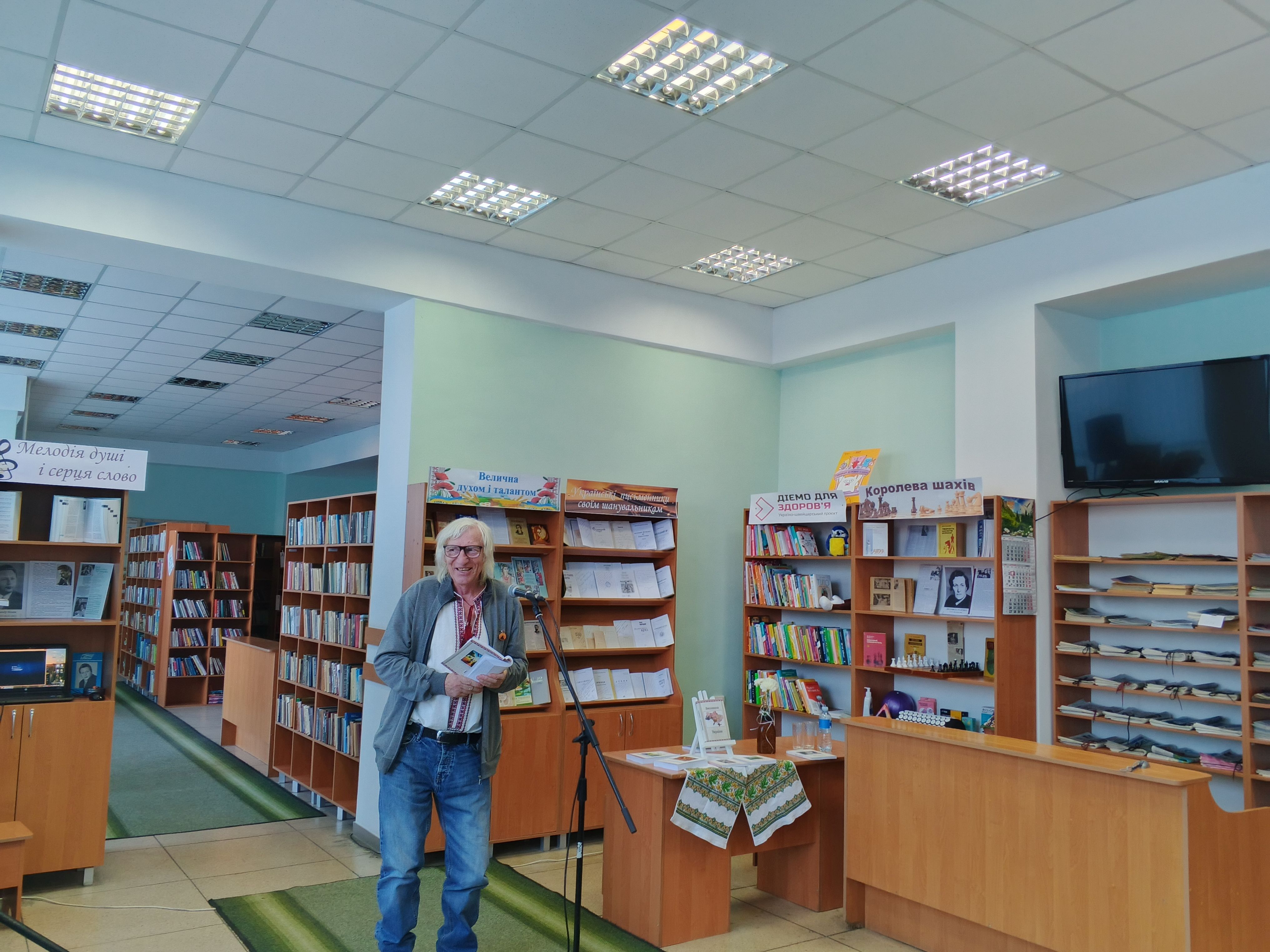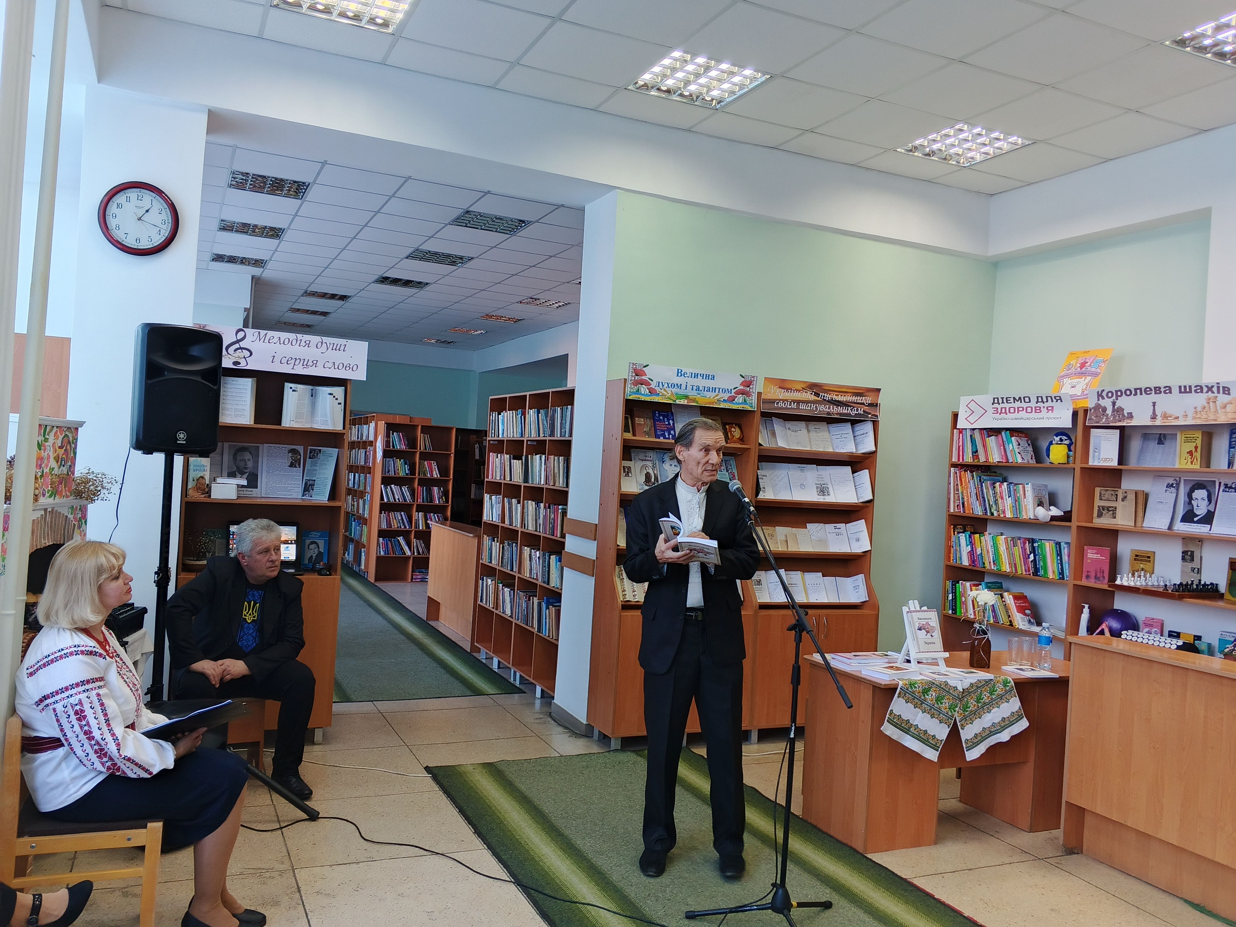 Для українців вишивка – це не просто мистецтво чи прикраса одягу, а символ пам’яті роду, зв’язку поколінь, захисту духовної сили. Саме цю ідею втілює у своїй творчості член Полтавської спілки літераторів Борис Кононенко, який прочитав кілька своїх віршів. Для слухачів прозвучали і пісні на слова автора: «Мамі» (виконав Анатолій Супрун) та «Гей, Богуне» (виконав Анатолій Куценко).Ведуча заходу - завідувач бібліотекою Світлана Голуб, відмітила, що збірка «Вишивана Україна» - не просто поезія, в ній голоси часу, біль, надія, любов, вишиті словом, яке звучить сильно, гідно. А ще щиро побажала майстрам пера невичерпної енергії, цікавих задумів, успіхів у творчих починаннях.