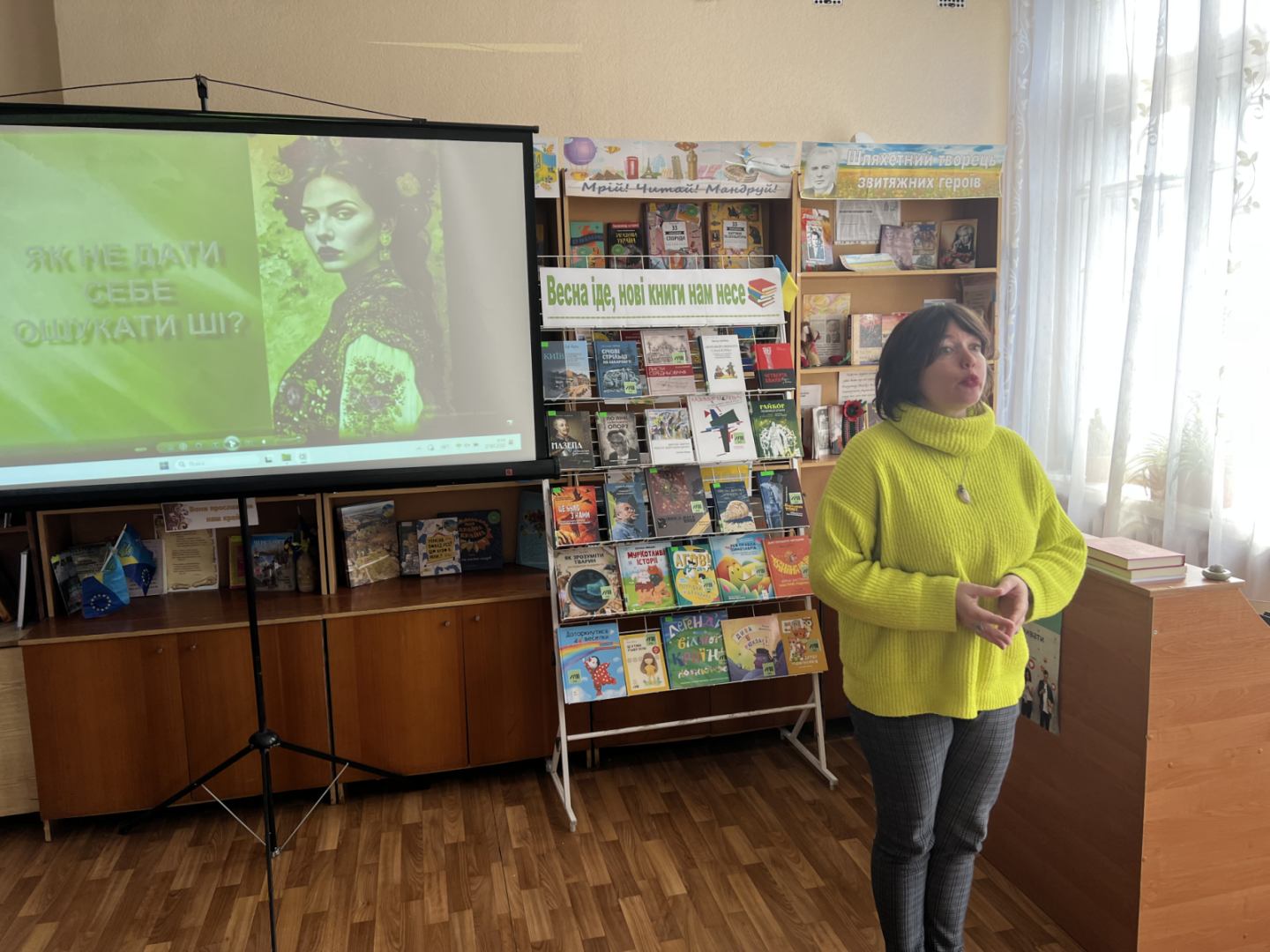 Провідний бібліотекар Ніна Бородавка провела тренінг-гру «Використання можливостей ШІ для створення бібліотечного медіаконтенту» в ході якої наочно продемонструвала, як в нейромережі Gemini можна швидко структурувати майбутній текст, сформувати влучні заголовки, підібрати актуальні тези та поєднати допис з візуальними елементами.
