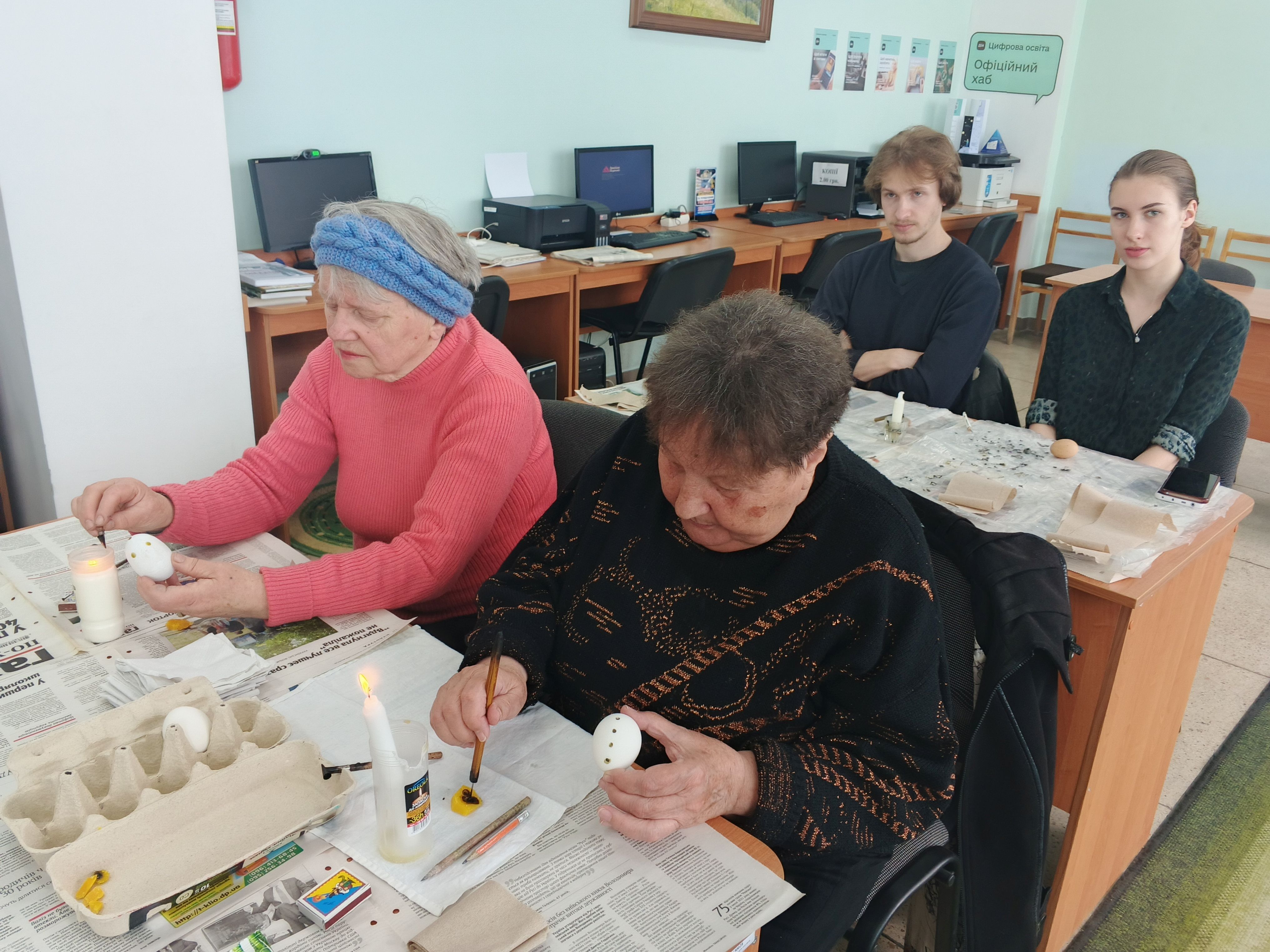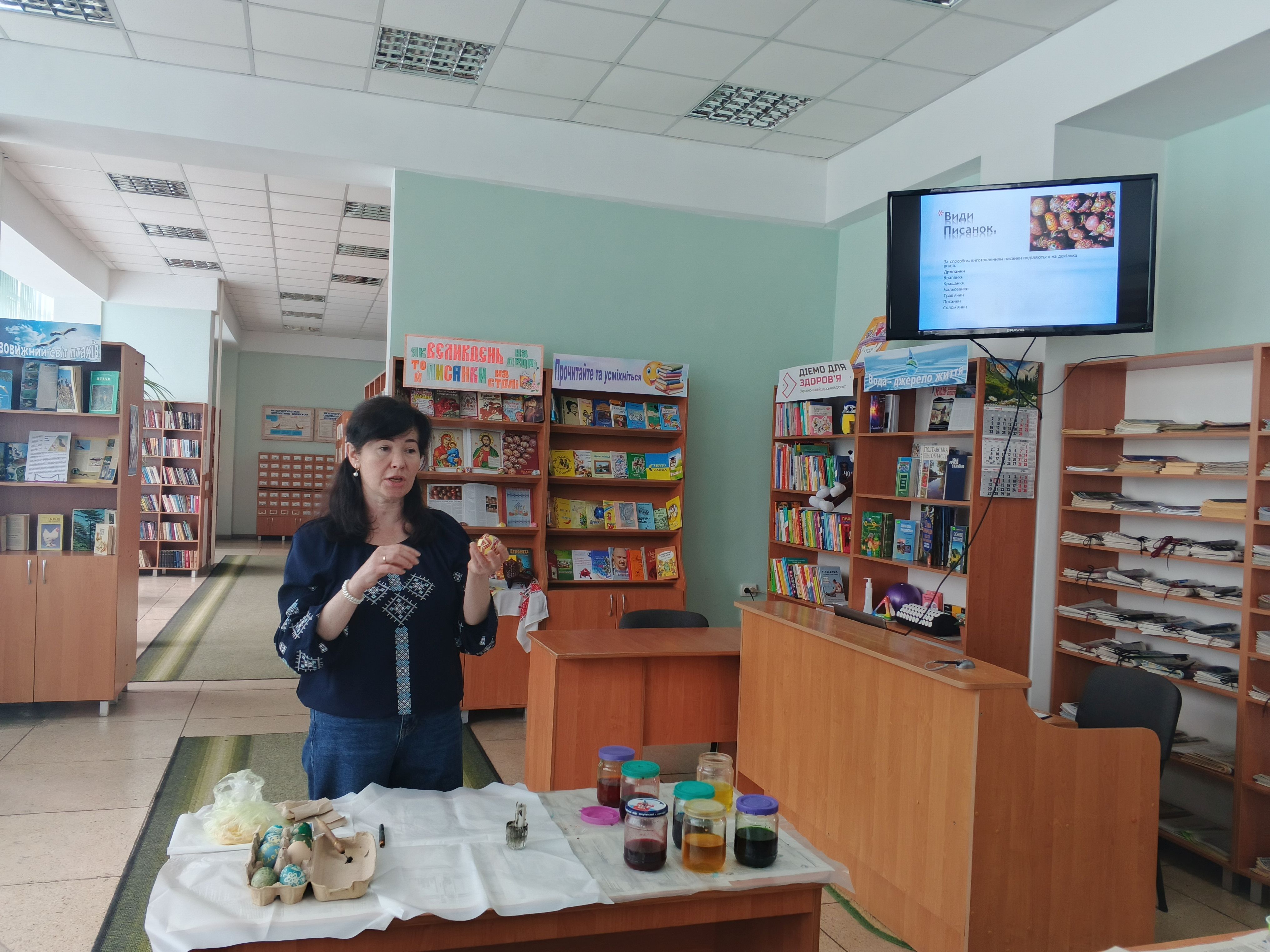 Під пильним наглядом майстрині кожен учасник зміг випробувати свої сили та створити власну маленьку «крапанку» (один із видів писанки) - справжню історію на шкаралупі. Учасники залишали бібліотеку з усмішками та власними шедеврами в руках.