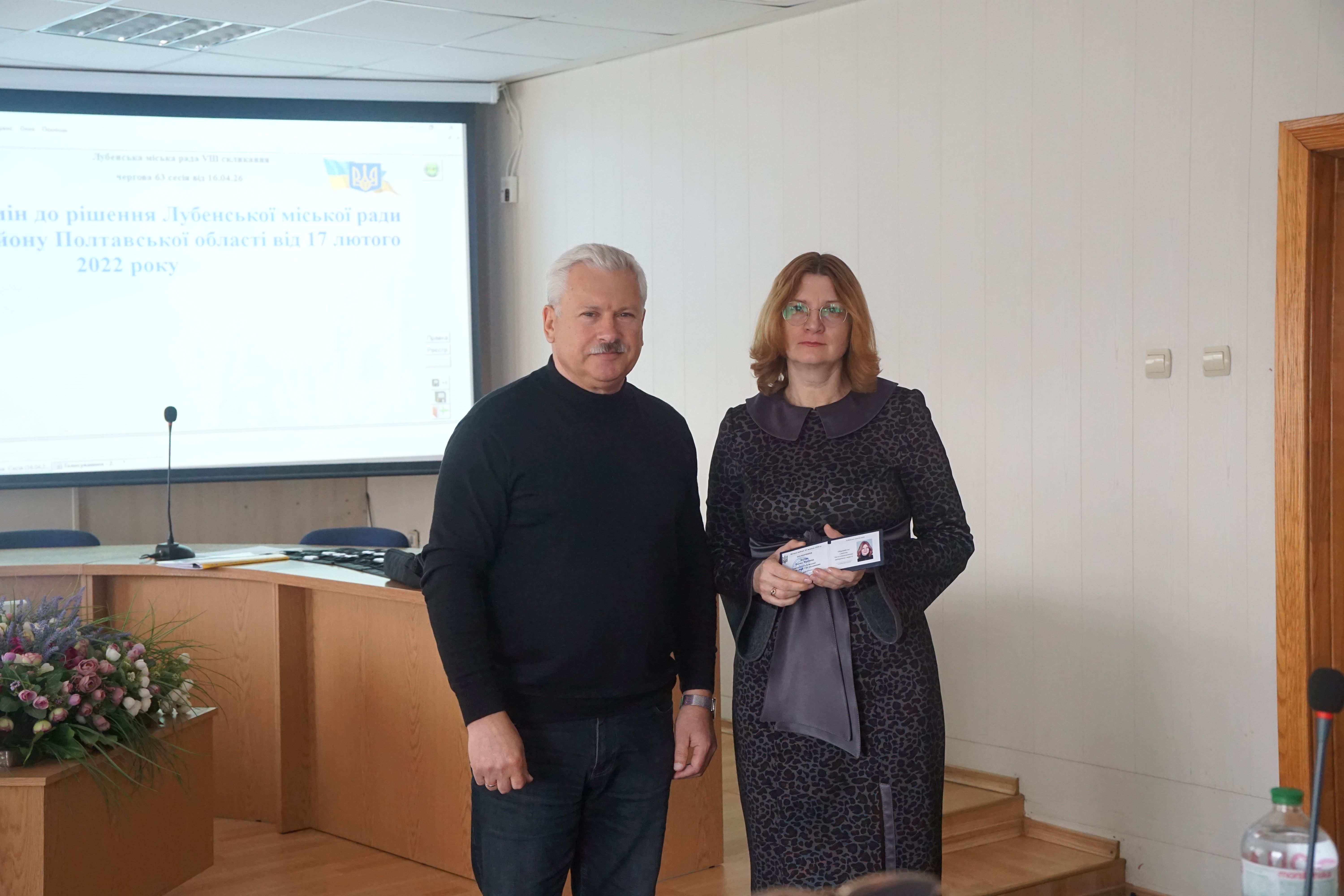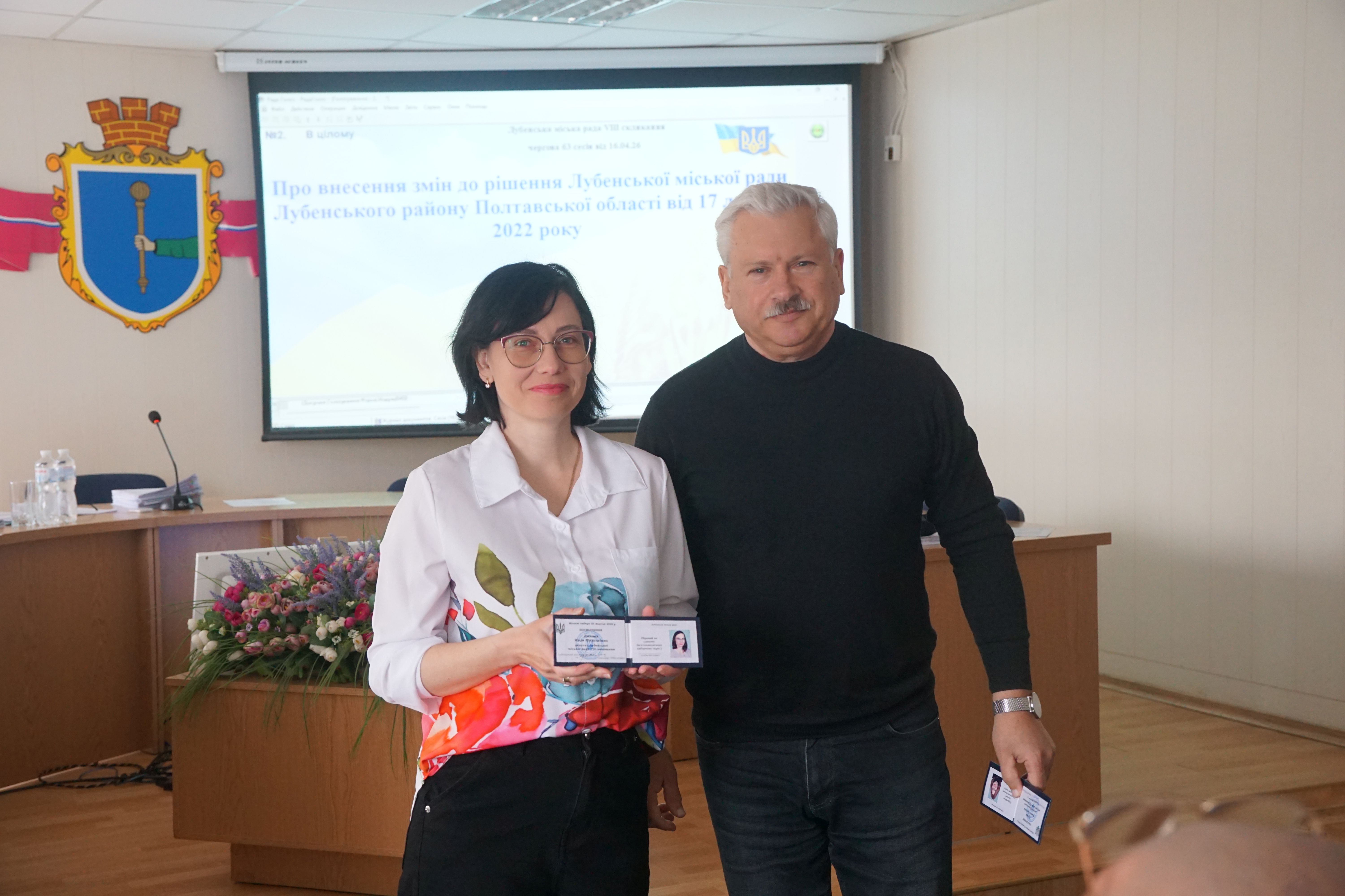 Наразі радою визнано повноваження депутатів Лубенської міської ради Юлії Диньки та Олени Пучки. Лубенський міський голова Олександр Грицаєнко вручив посвідчення депутатам. Побажав їм плідної, злагодженої роботи на користь громади.