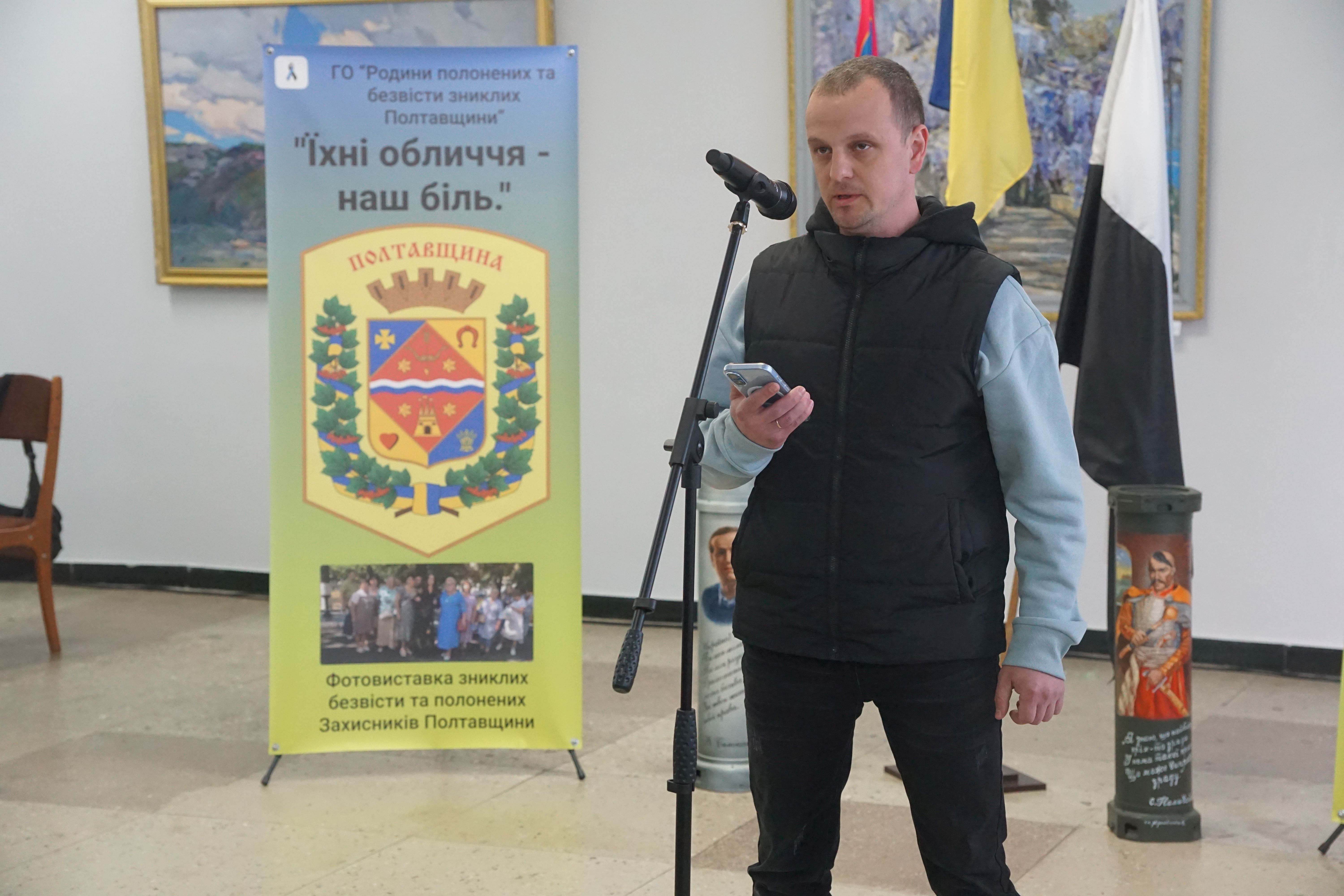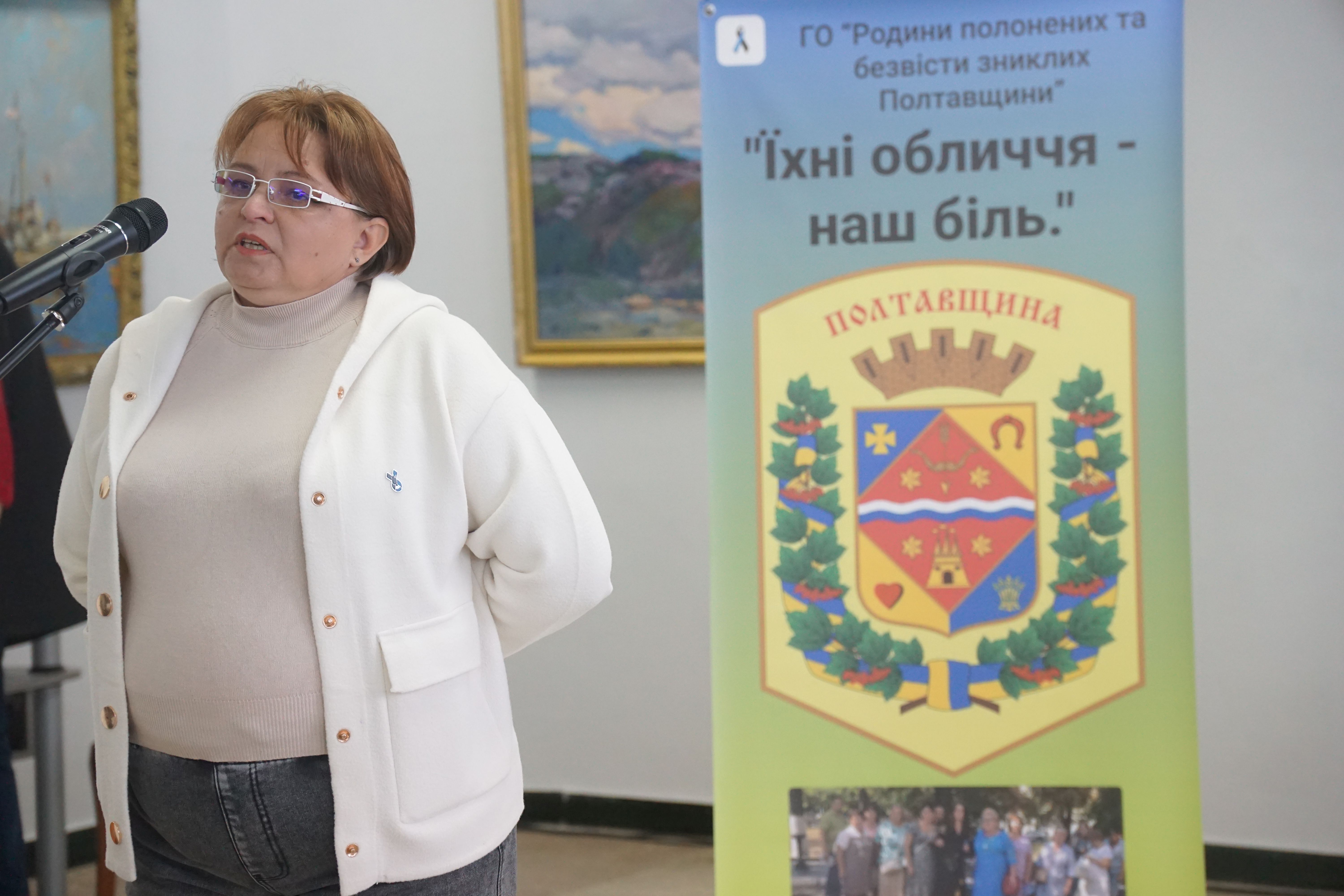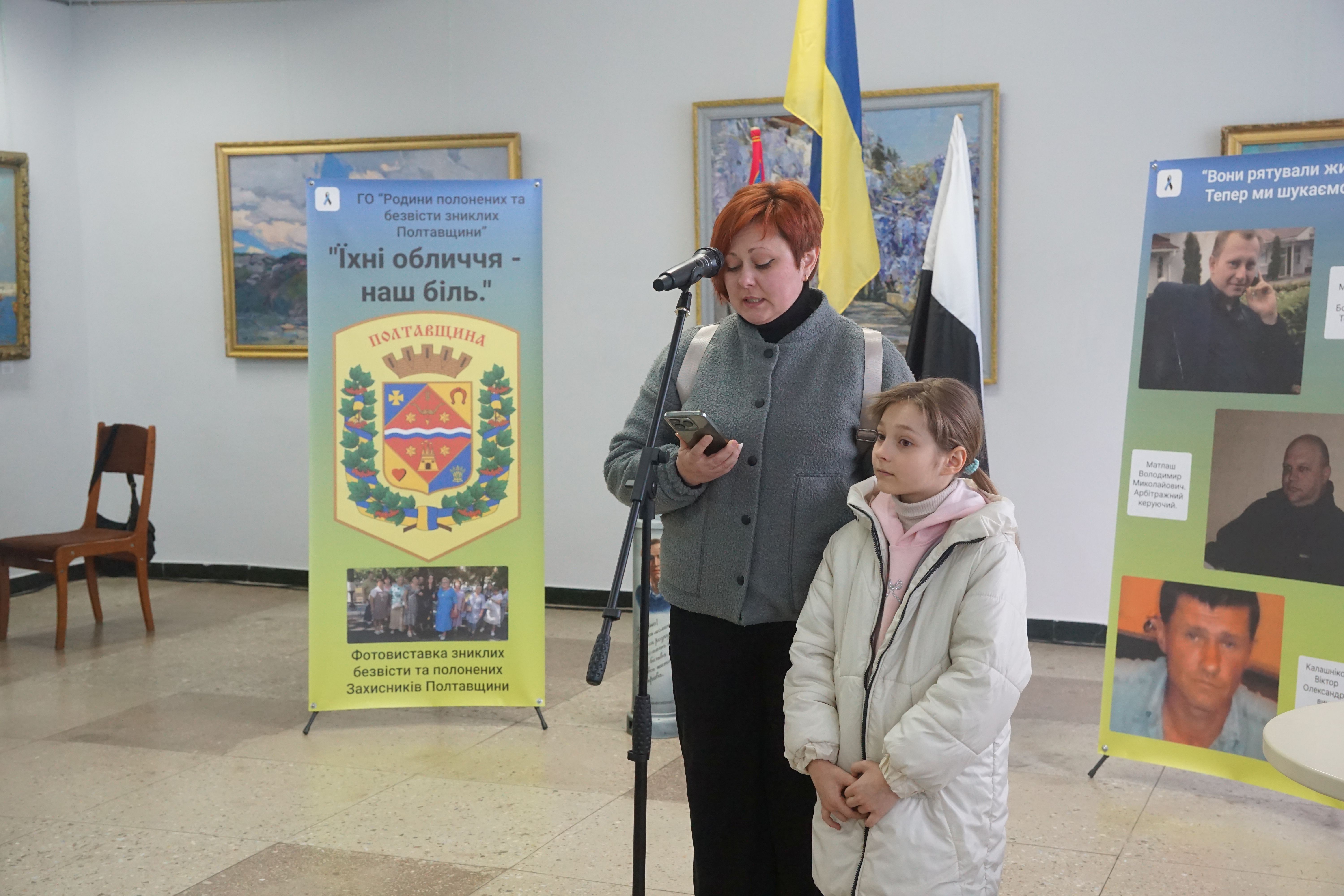 Про створення подорожуючої фотовиставки, ідею, оформлення і бажання аби громади Полтавщини знали своїх героїв в обличчя йшлося у виступах голови ГО «Родини полонених та зниклих безвісти Полтавщини», керівниці та головної організаторки проєкту Лідії Місюренко, ініціаторки та дизайнерки фотовиставки, дружини безвісти зниклого Євгенії Мєх, координаторки виставки Наталії Кіяшко.