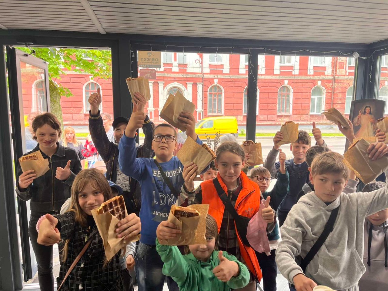 Після годинного екскурсу в історичне минуле нашого краю, директор БФ Карітас Лубни Василь Улішак, гостинно запросив дітей до закладу “PADRE PIZZA”, де вони скуштували смачну випічку та поласували молочним какао.